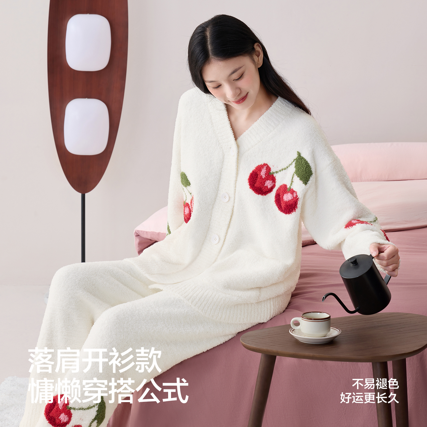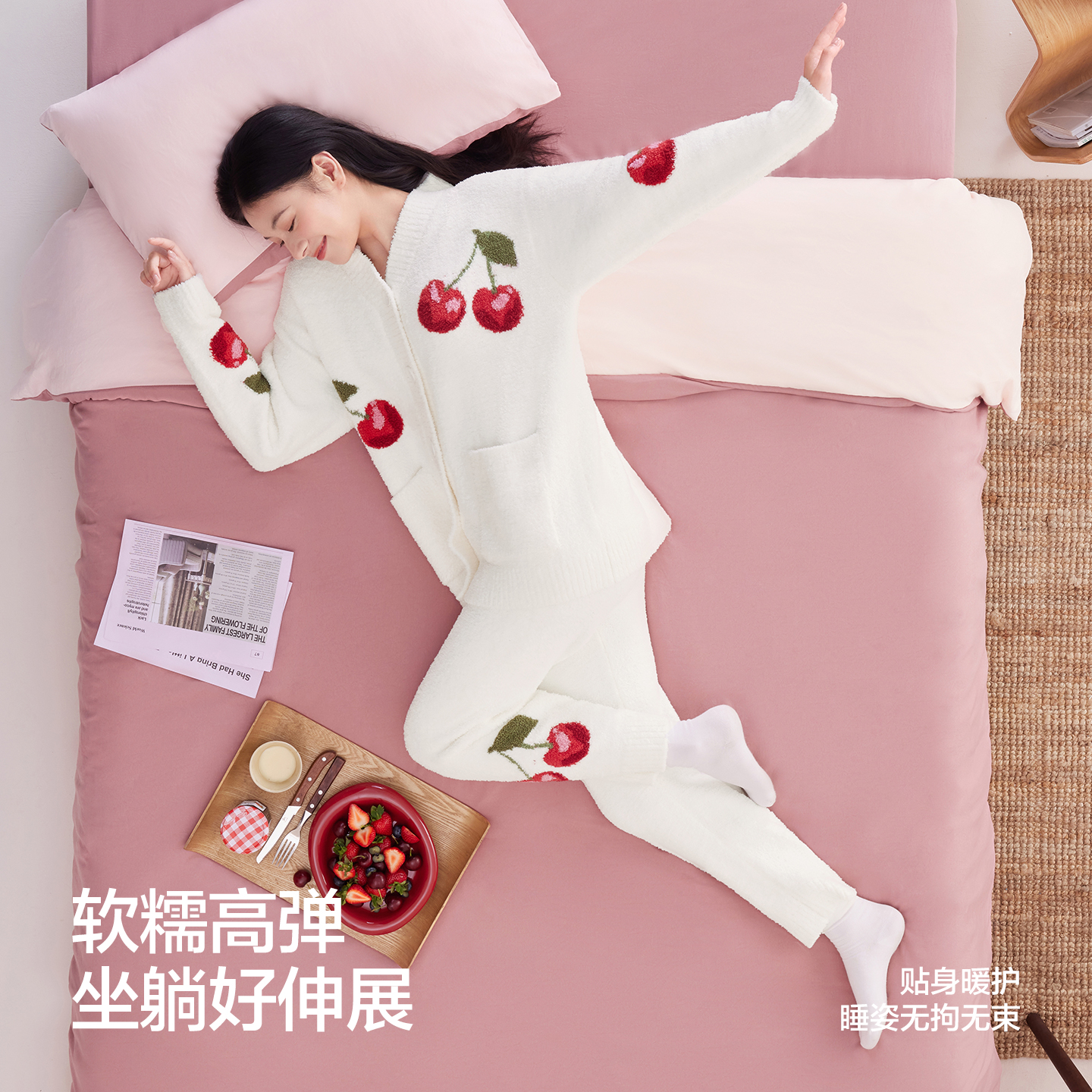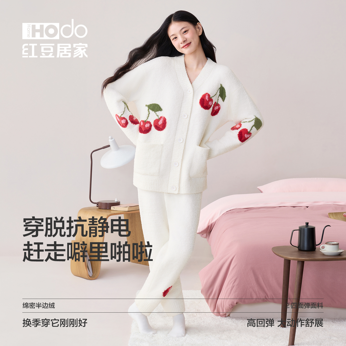 睡衣女冬季 红豆开衫 加厚可外穿防静电半边绒家居服套装 预售