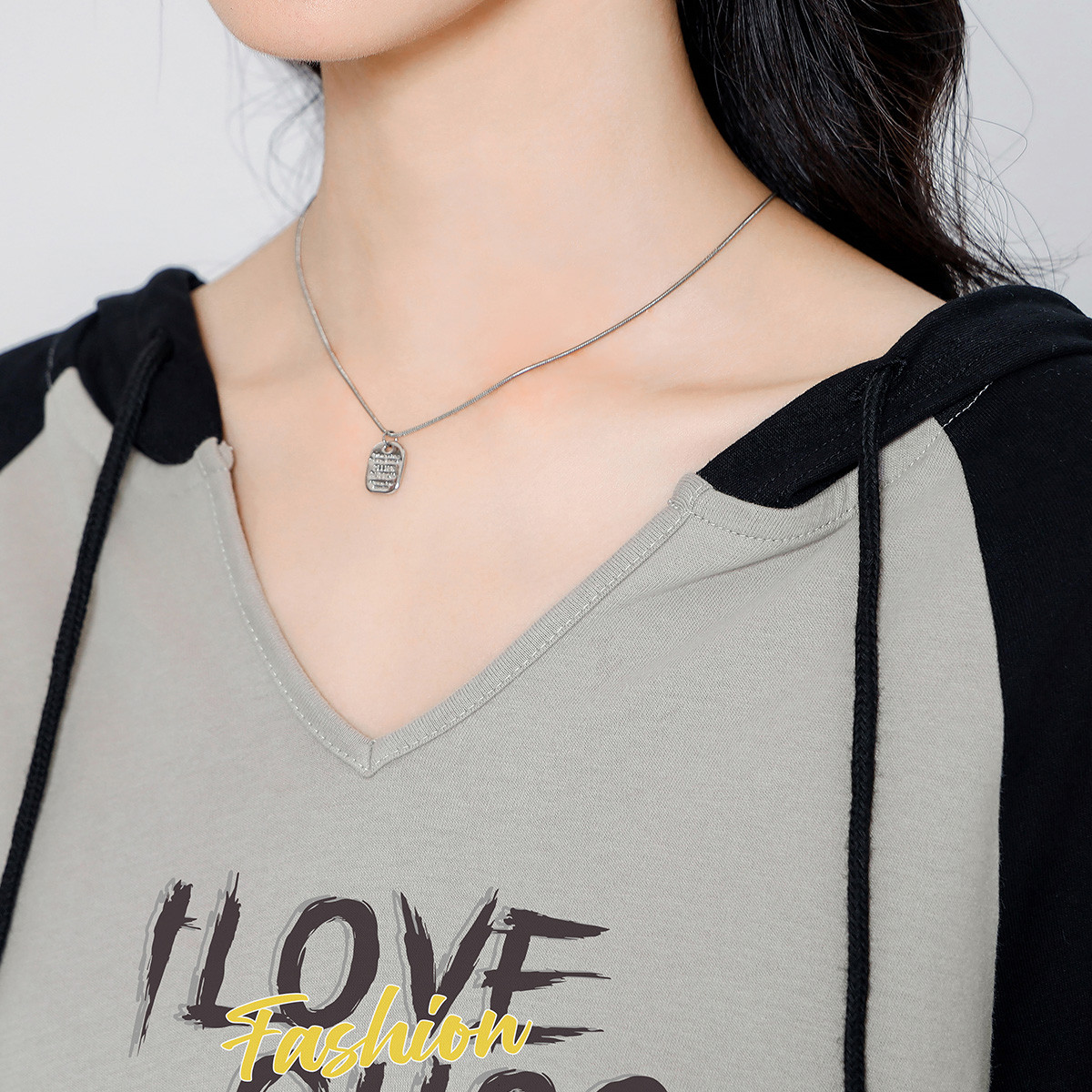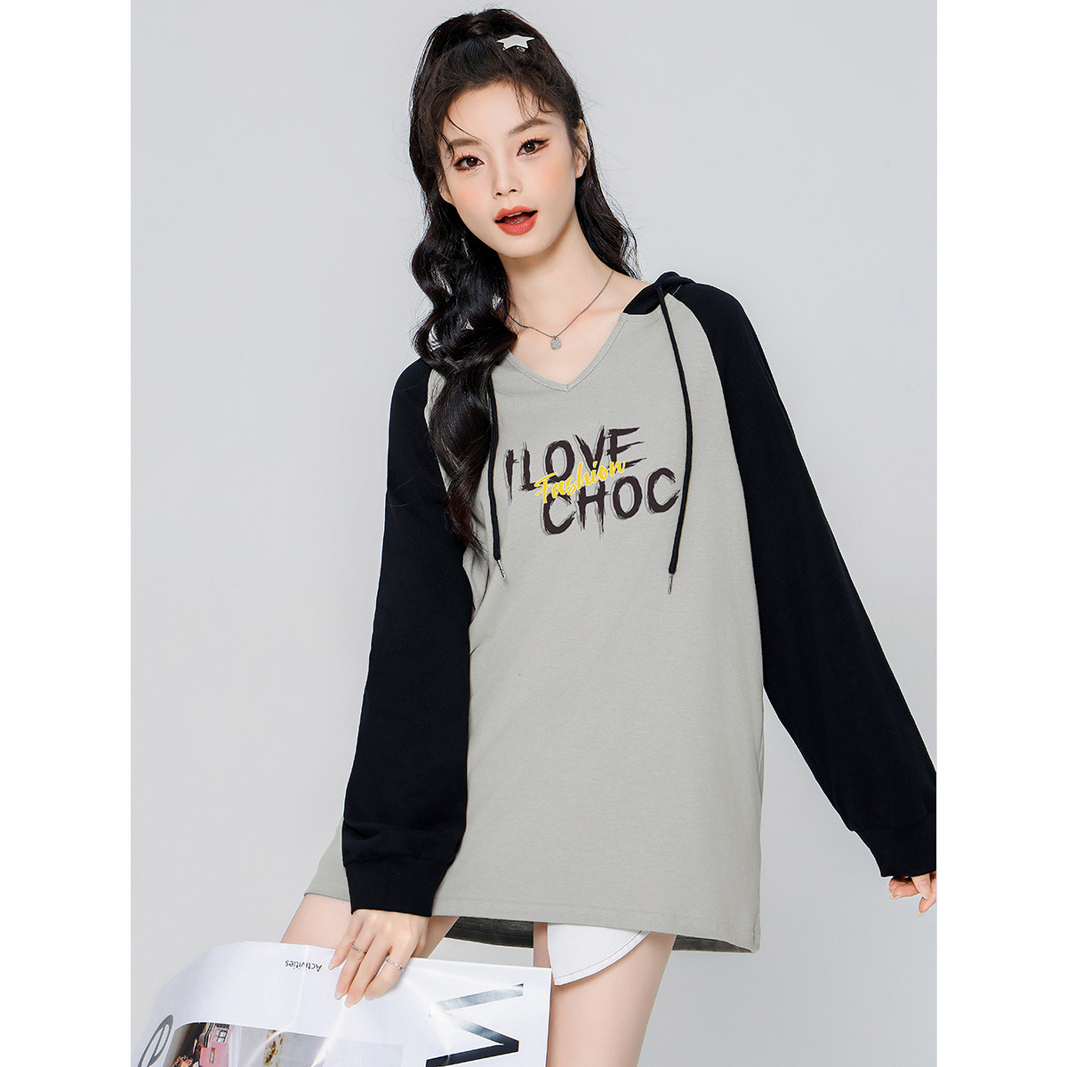 宽松显瘦上衣潮牌 新款 ILOVECHOC连帽长袖 T恤女2025秋季