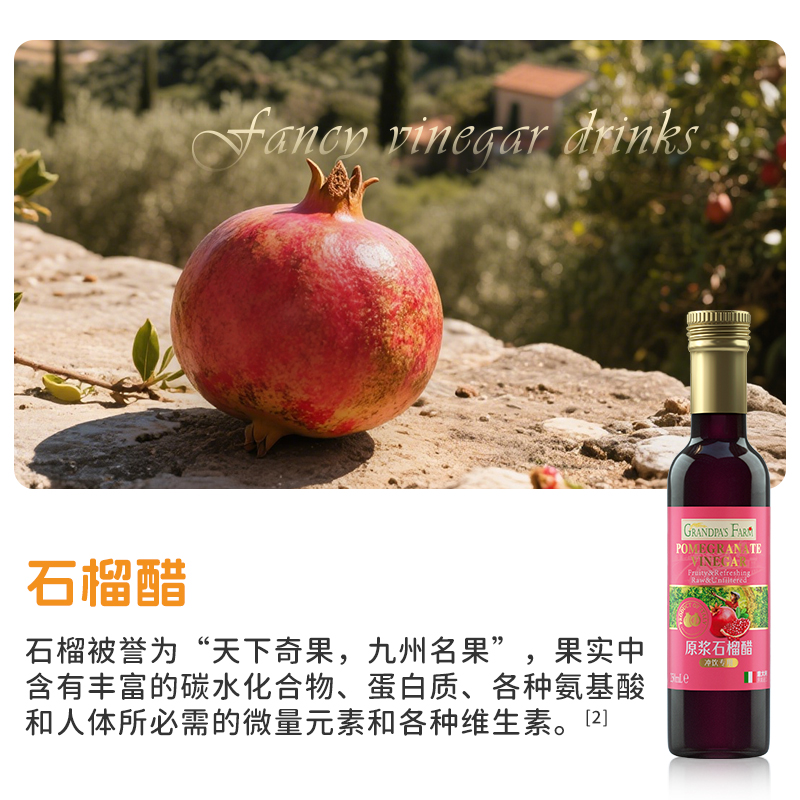 爷爷 农场进口原浆石榴醋250ml无添加儿童果醋天然发酵酸醋饮料