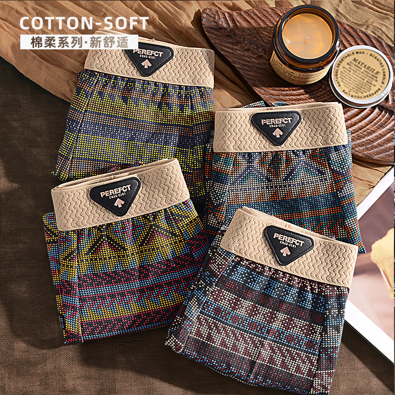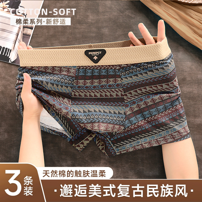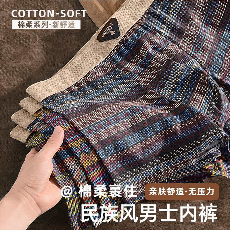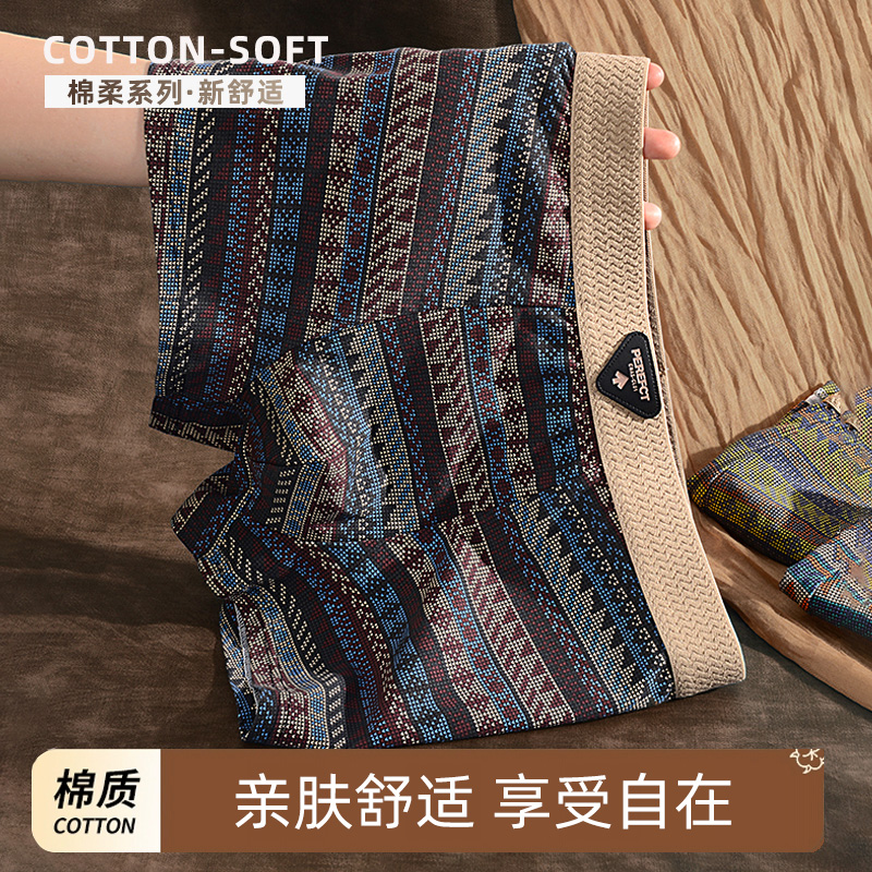 平角内裤 透气舒适短裤 棉质民族风新款 印花平角裤 衩 底裤 嘉迪丝男士