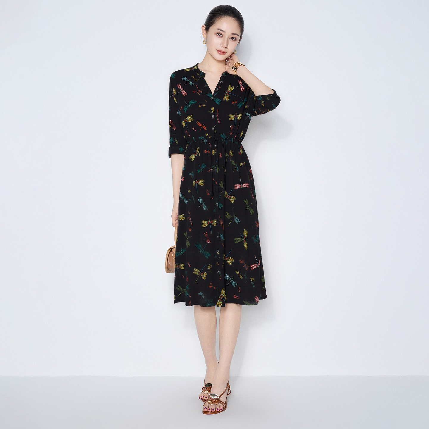 含棉腰带收腰单排扣衬衫 新款 裙32527B011 Moda连衣裙2025夏季 Vero