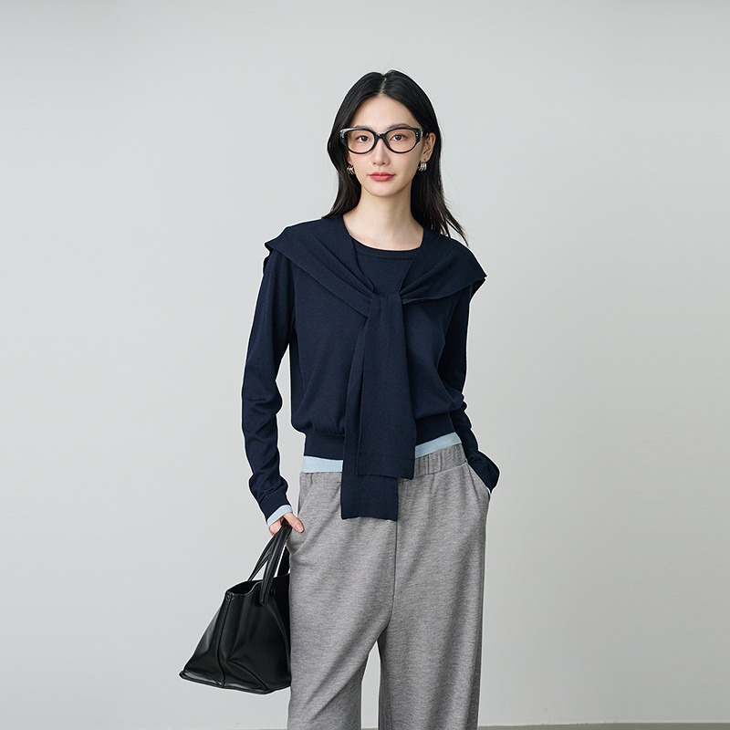 披肩软糯学院风针织衫 新款 女舒适百搭上衣 秋季 NEELLY纳俪商场同款