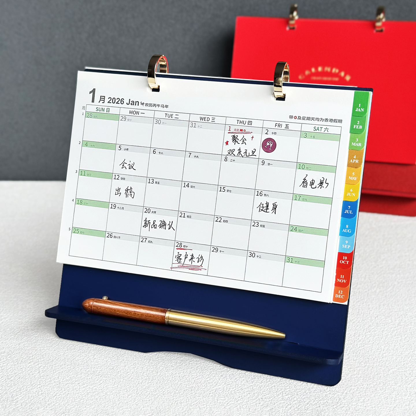 2026年台历新款 高端皮质简约红色日历商务礼盒装