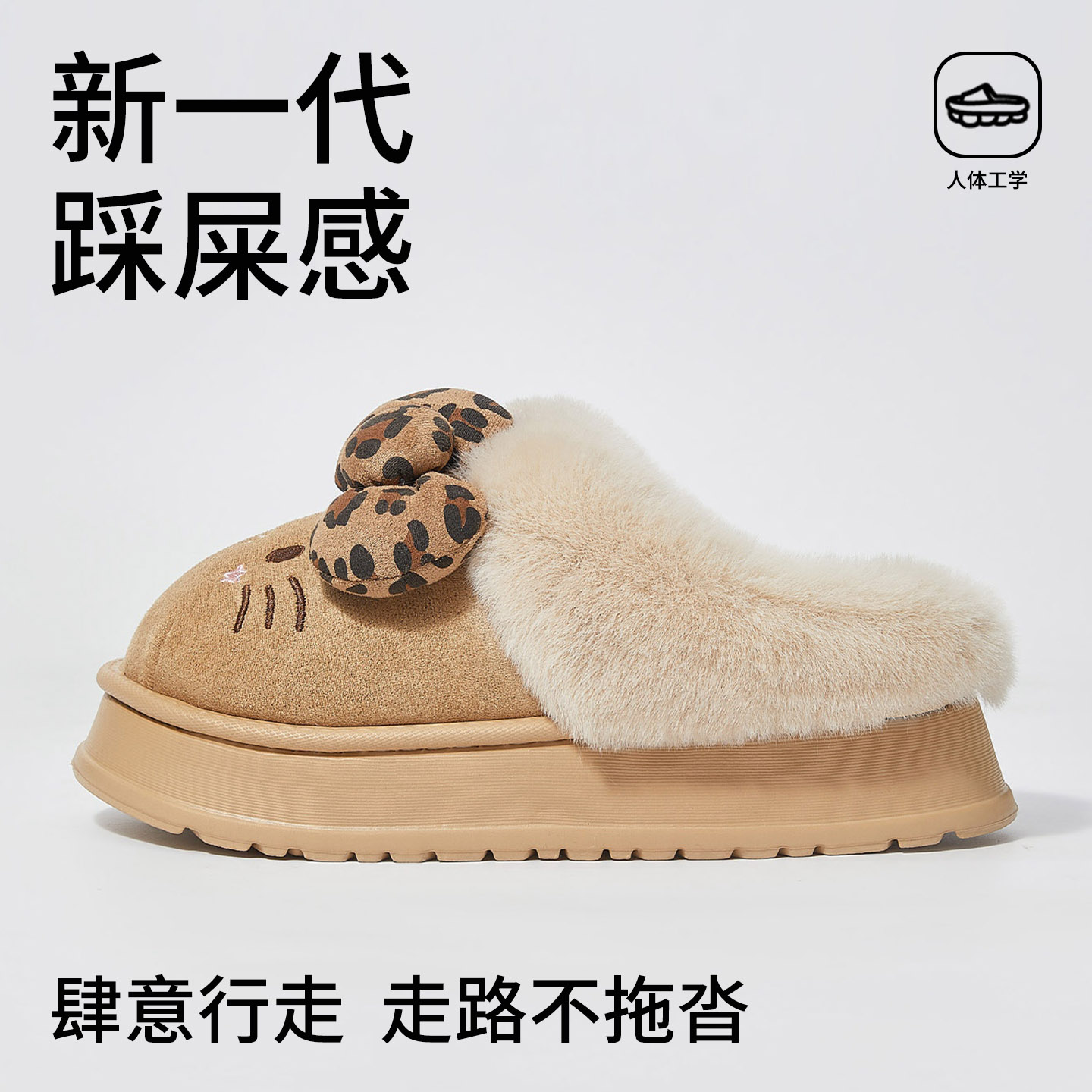 女冬季 KT猫棉拖鞋 室内居家用厚底防滑保暖加绒毛拖鞋 2025新款 女款
