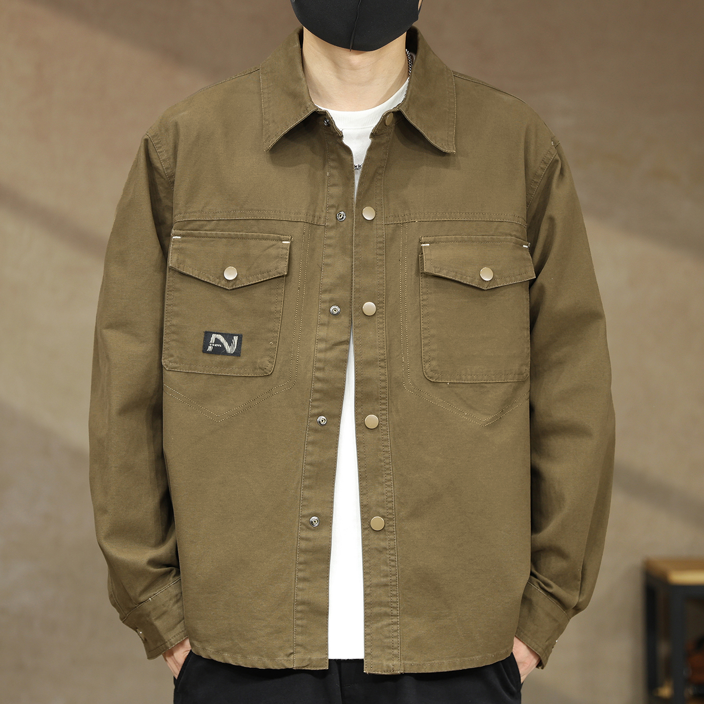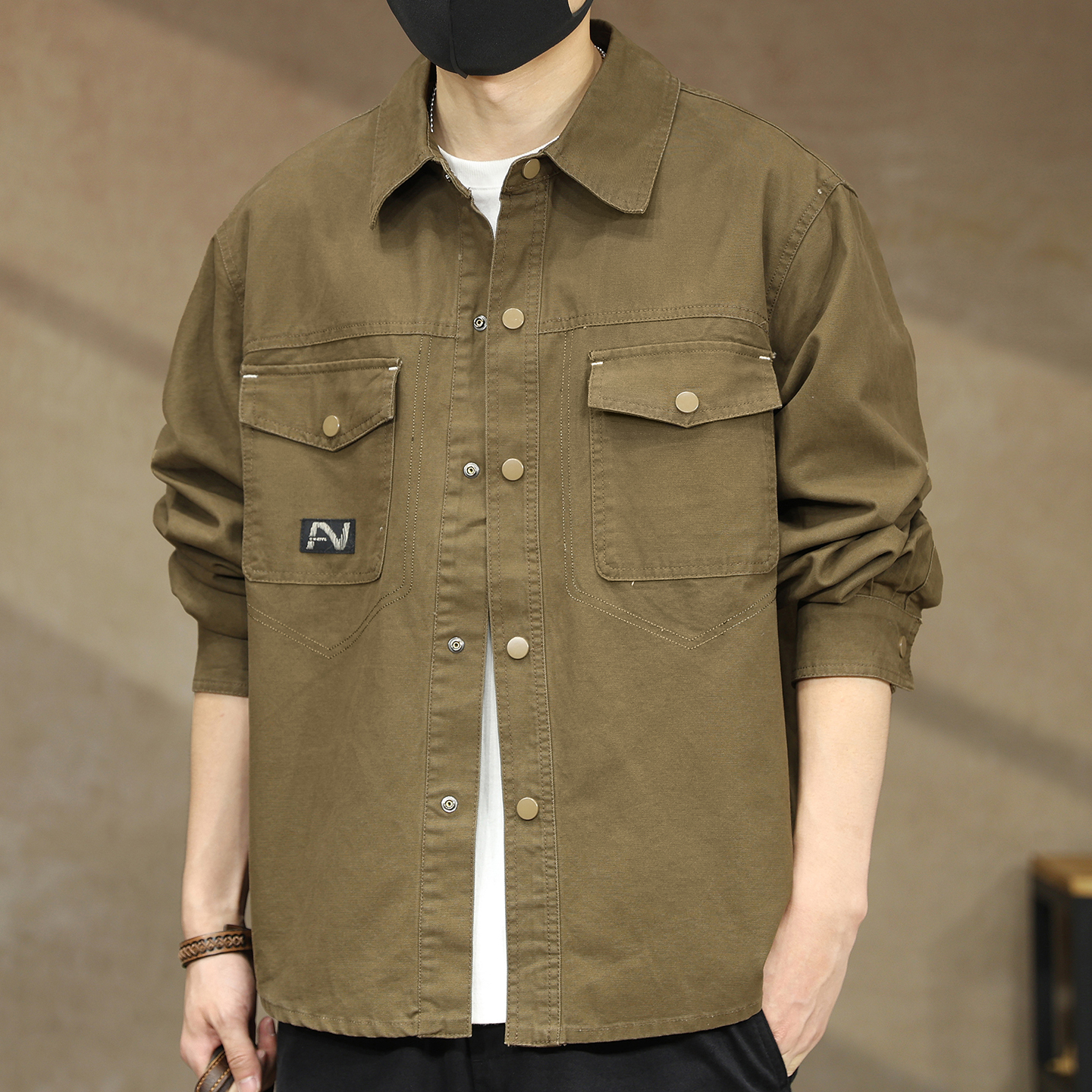 男休闲宽松衬衣秋季 清仓特卖hansca美式 衬衫 长袖 翻领外套 复古工装