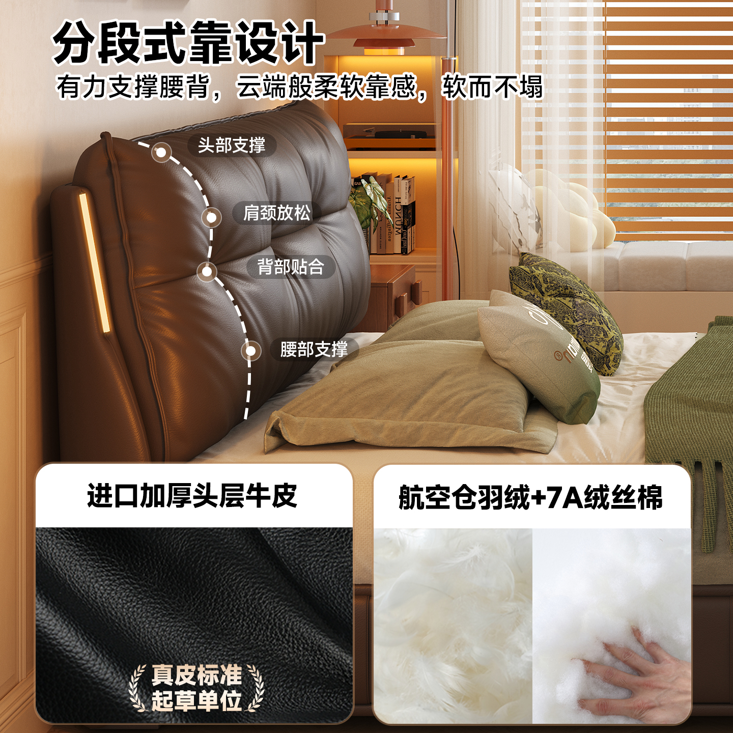 帕沙曼真皮床主卧室大床中古风气压储物床1米8双人床复古风箱体床