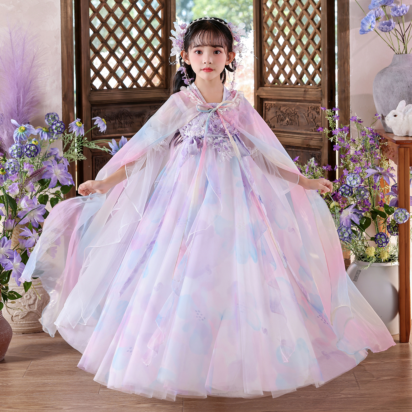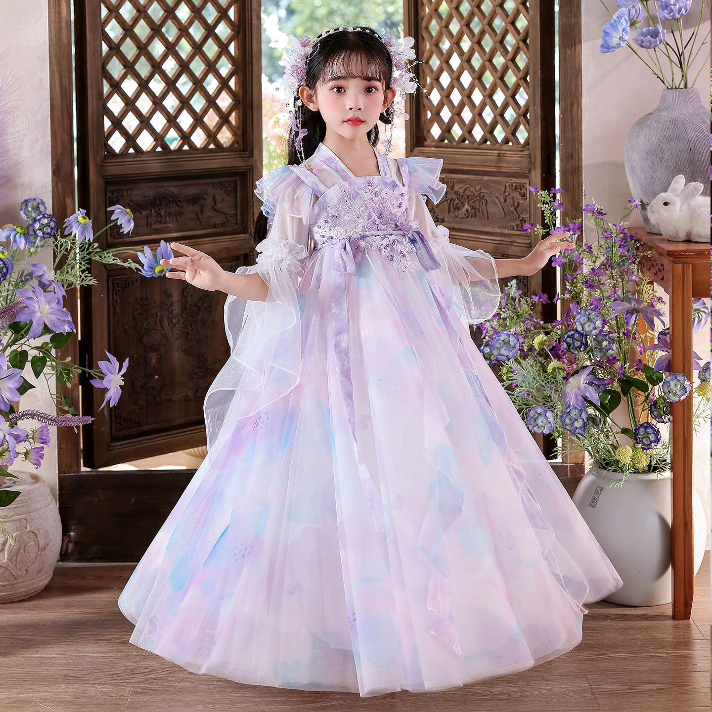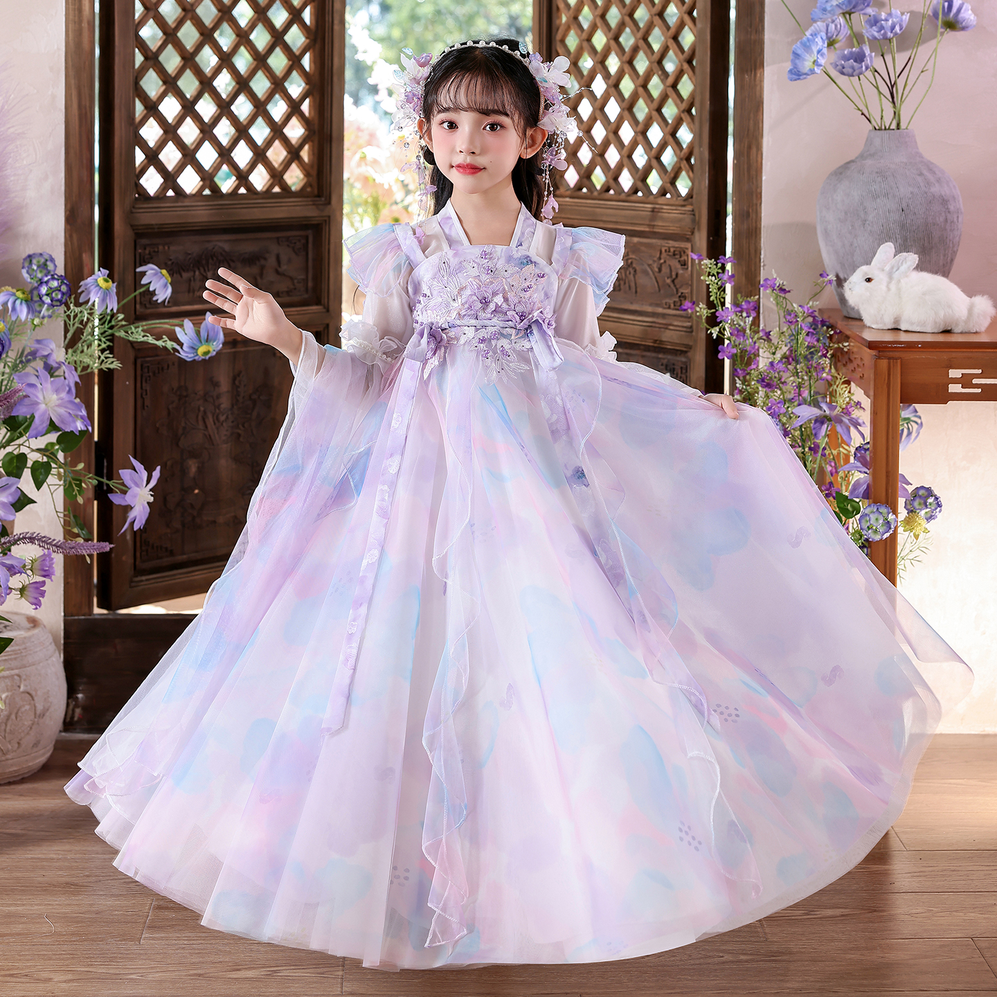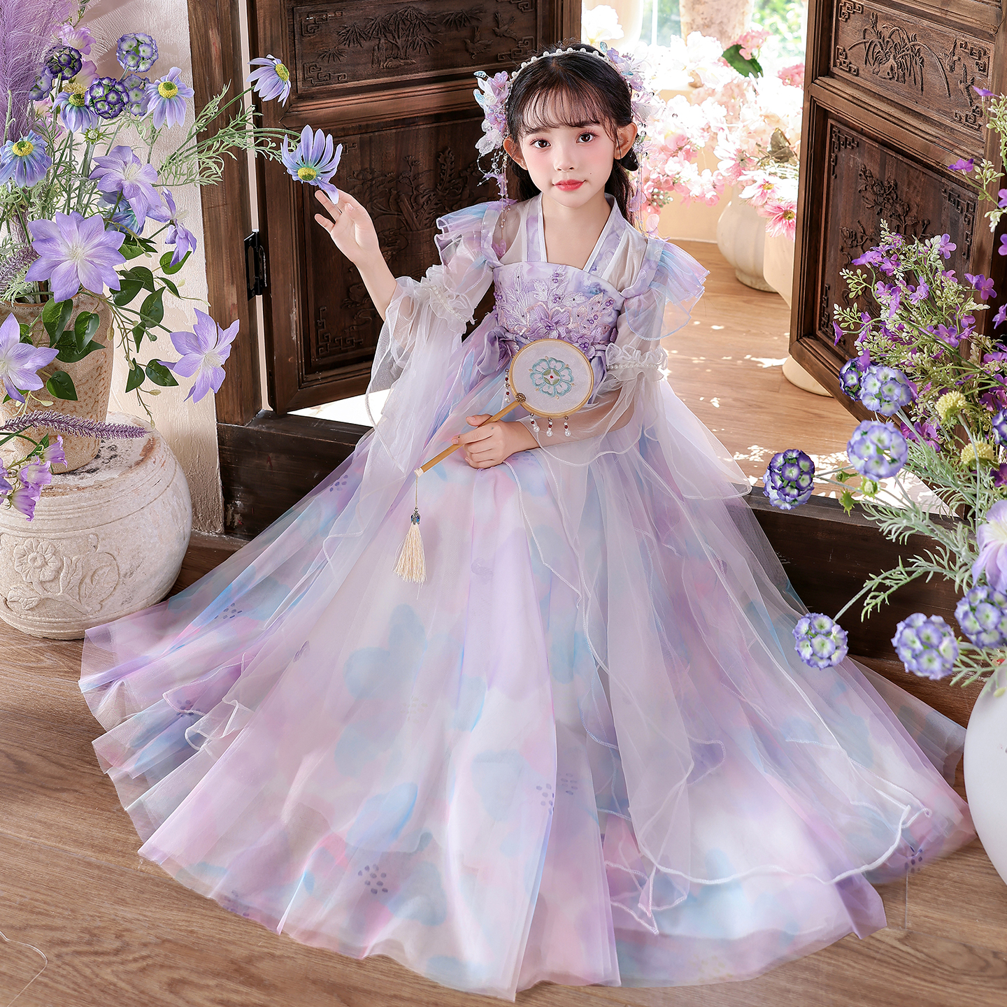 国风连衣裙小女孩古风超仙公主裙春秋季 汉服女童2025新款 儿童唐装