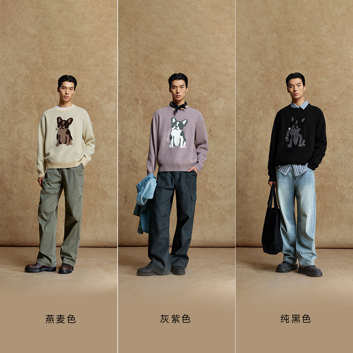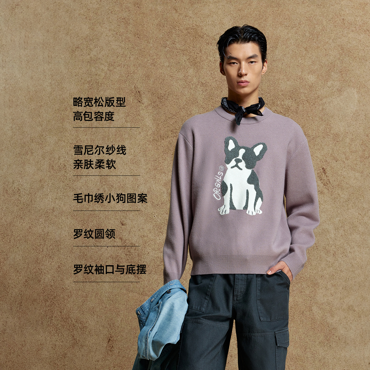 毛巾绣宽松圆领针织衫 新款 士毛衣2025年秋季 杰克琼斯奥特莱斯男装