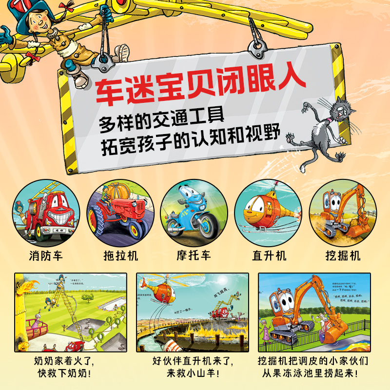 车会飞 小小消防车全6册好厉害小车迷绘本工地上 挖掘机摩托车直升机拖拉机交通工具绘本趣味故事书想象力 新书首发点读版