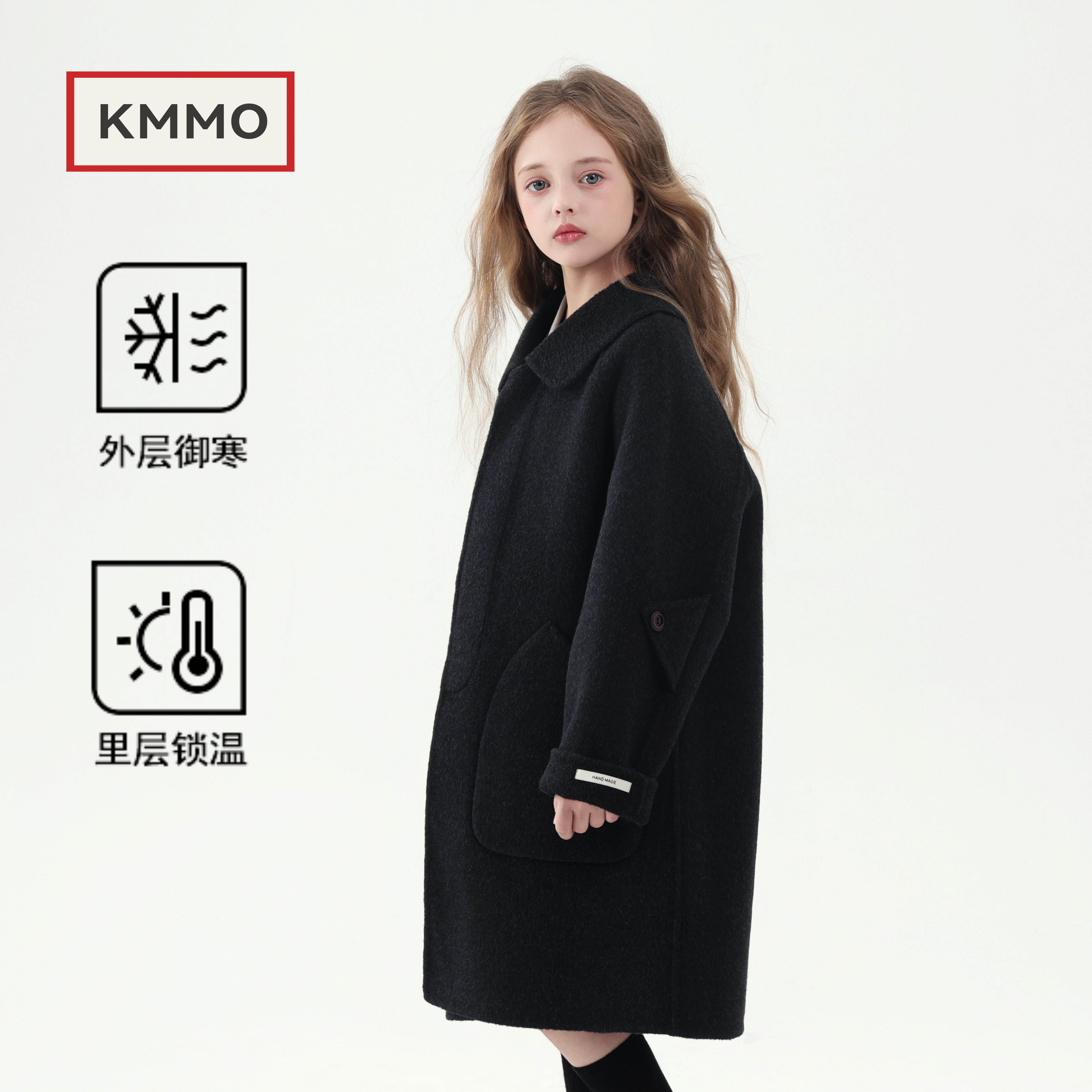 加厚 儿童羊毛呢子外套中长款 KMMO女童双面羊绒大衣2025新款 秋冬季