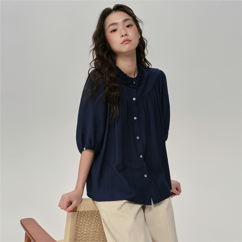 纯棉拼接蕾丝宽松衬衣女长袖 女新款 18345616 佐丹奴白衬衫 设计师款