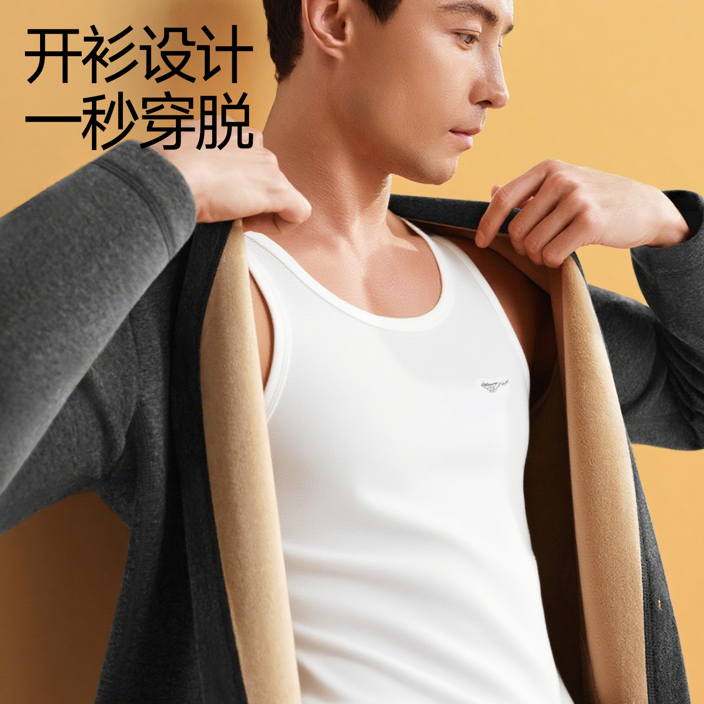 含羊绒蚕丝贴片发热秋上衣冬季 恒源祥无痕保暖背心男士 内穿打底衫