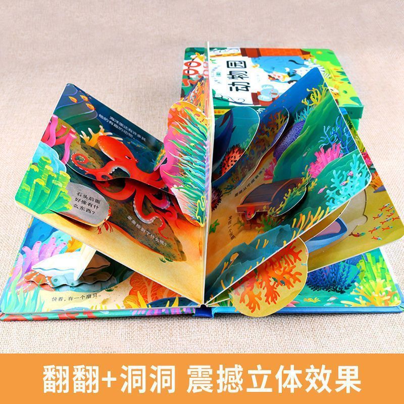 硬壳 小秘密立体书儿童3d绘本认知翻翻书宝宝早教启蒙撕不烂益智书籍1 6岁婴幼儿启蒙认知科普百科书识物情景认知海洋 藏起来