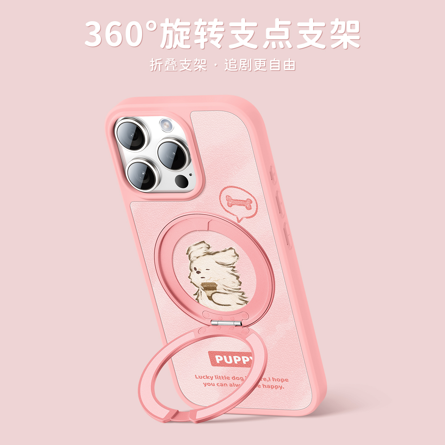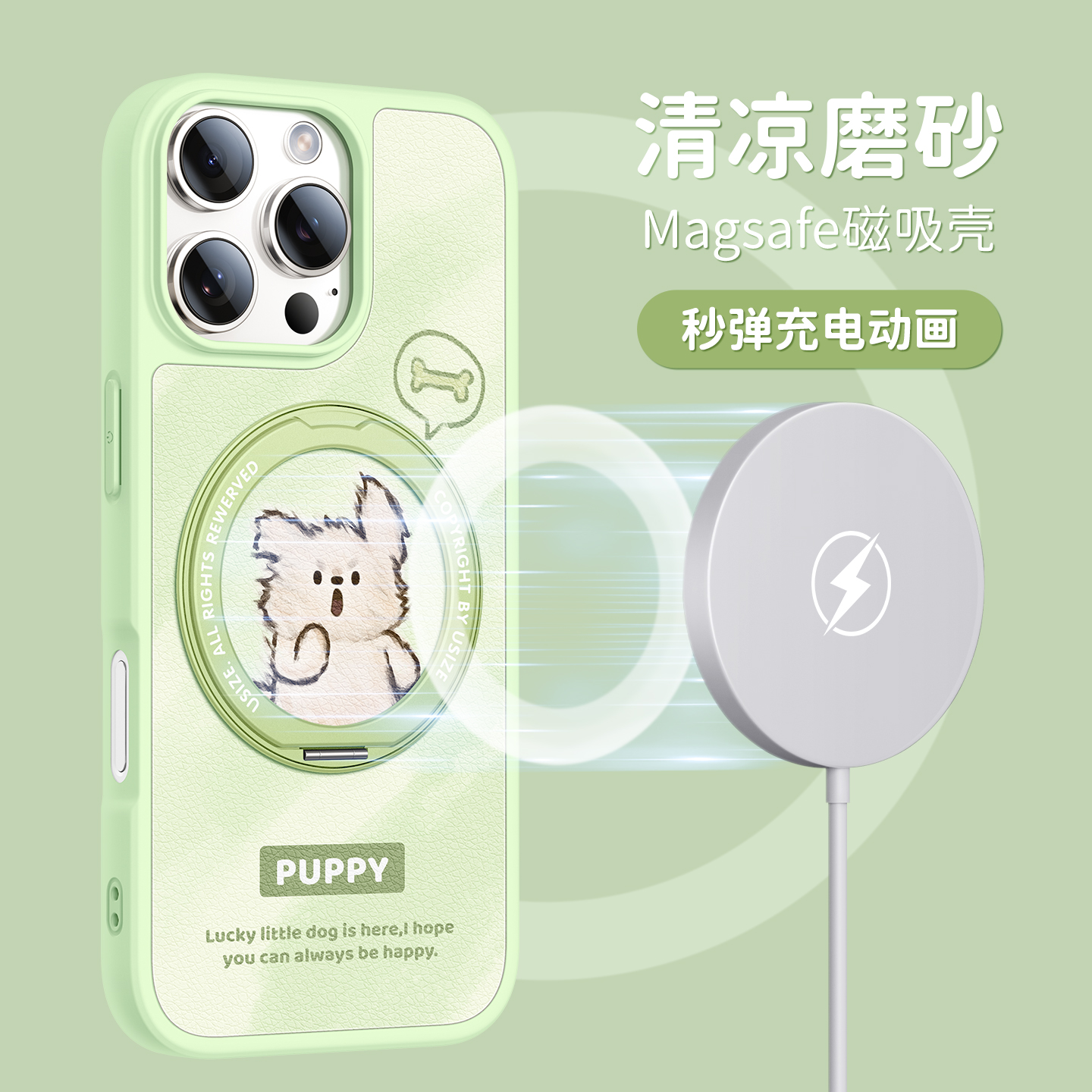 适用苹果17promax手机壳新款 16pro保护套14全包magsafe磁吸带支架小清新iphone15防摔帅气小狗air支点软外壳