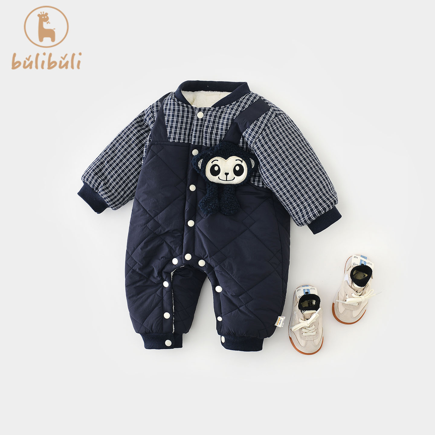 婴儿衣服秋冬装 男宝宝学院风连体连体衣加绒保暖满月百天哈衣冬季