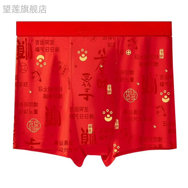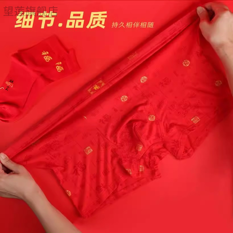 大码 新款 平角内裤 男士 200斤 马年喜庆新年大红本命年肥宽松佬短裤