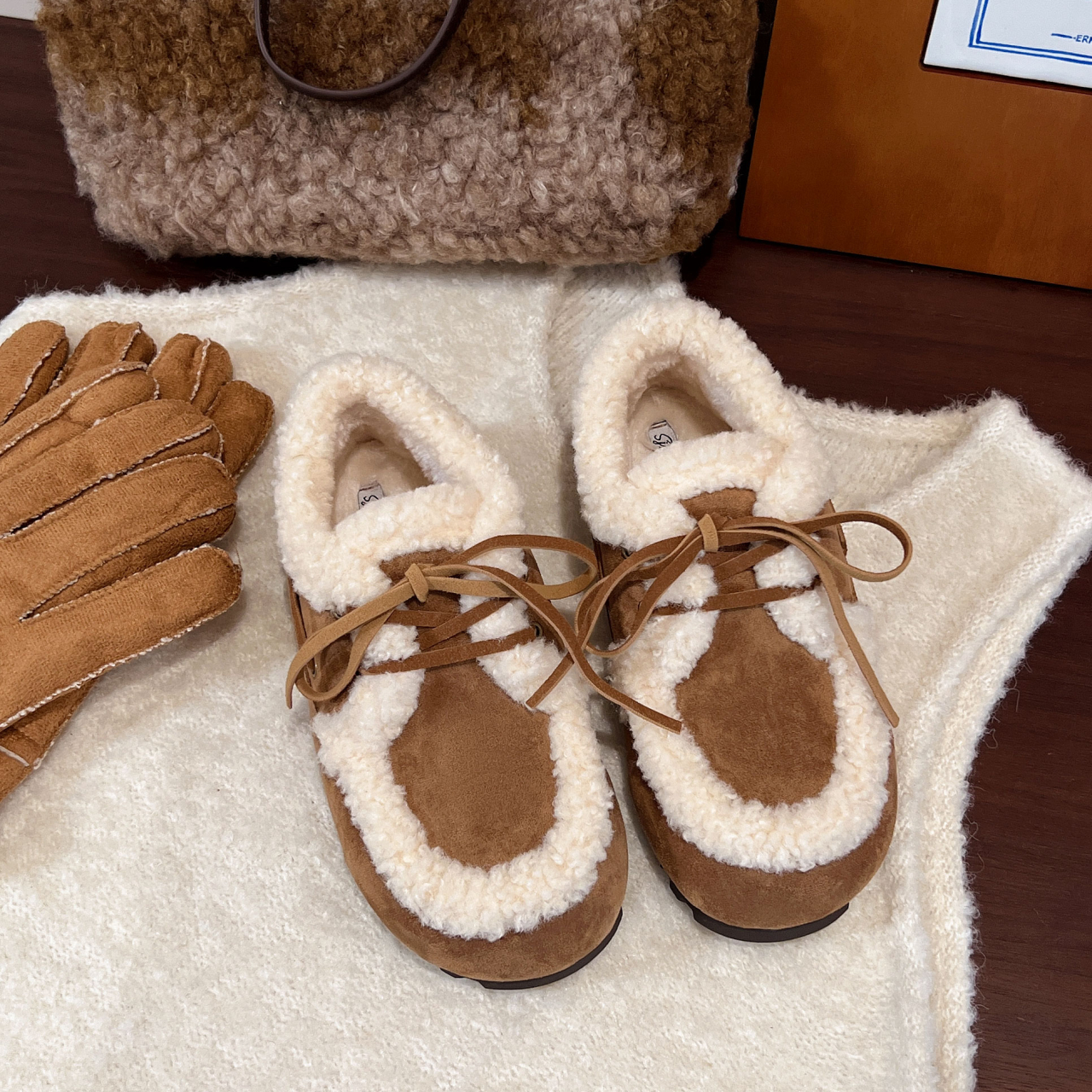 豆豆鞋 温柔风勃肯鞋 子 女2024秋冬新款 星期六真皮平底加绒浅口单鞋