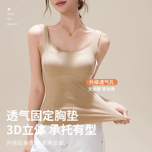 保暖背心女秋冬季 带胸垫文胸一体蕾丝吊带发热无痕内搭打底内衣