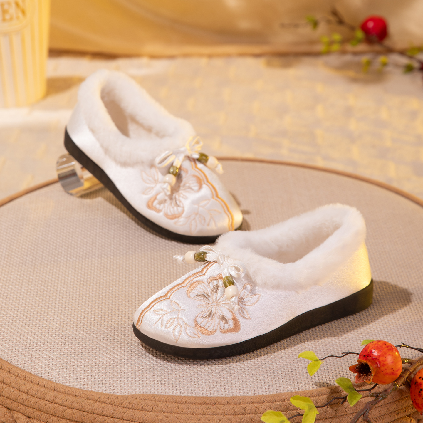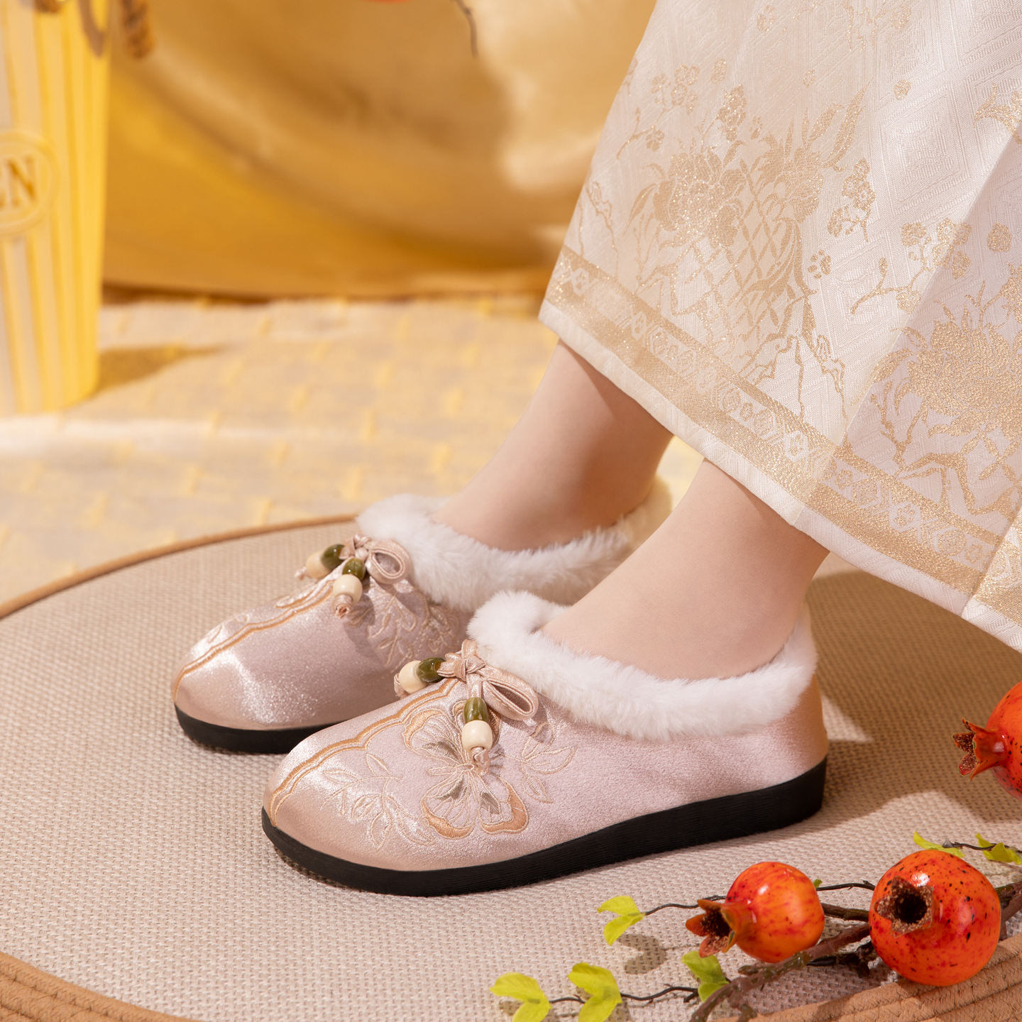 复古保暖绣花棉鞋 冬季 加绒软底一脚蹬舒适妈妈鞋 女新款 老北京布鞋