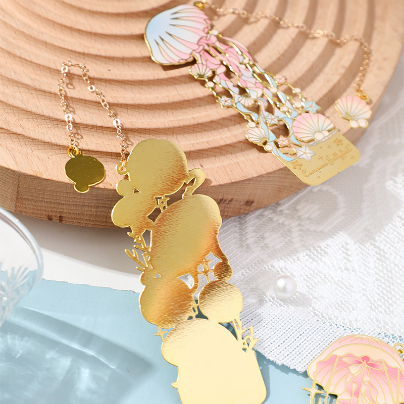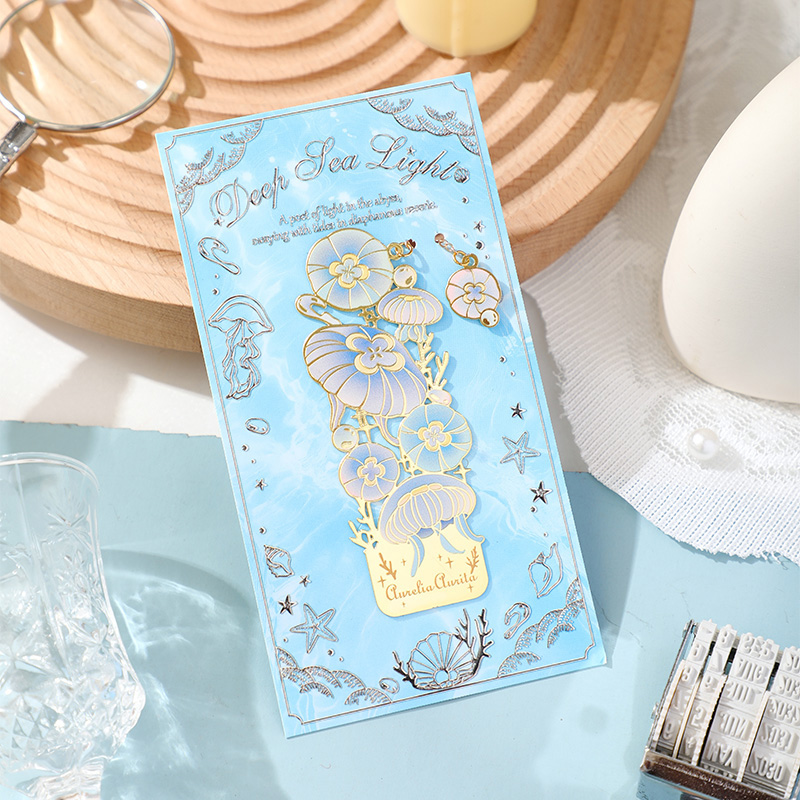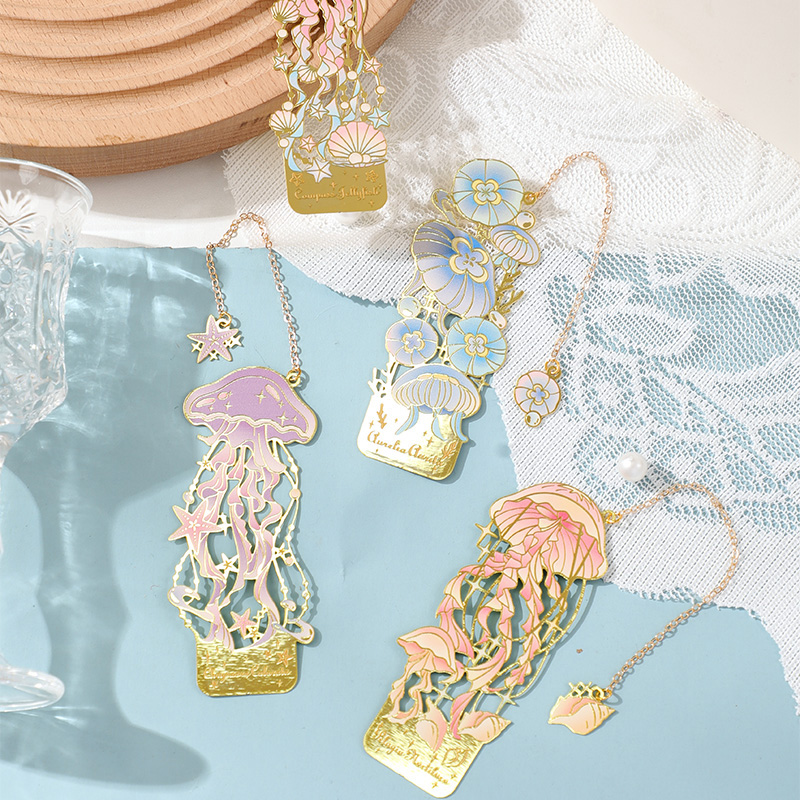 深海浮光金属书签 ins风高级感梦幻海洋动物水母精致浮雕图案学生阅读索引书页夹纪念品情人节礼物