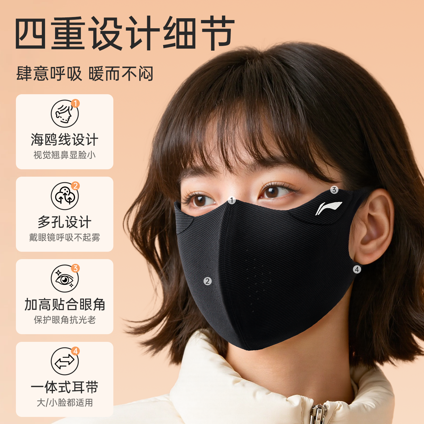 李宁口罩保暖骑行女高颜值2025新款 防晒透气3d立体防风寒加厚秋冬