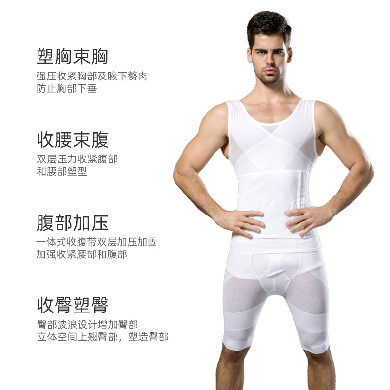 分体套装 INSMANX男士 塑身衣束胸收腹紧身弹力内衣塑大腿提臀薄款