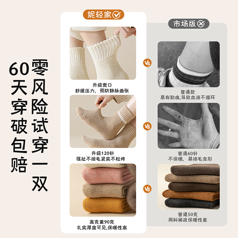 搭配小皮鞋 中筒袜秋冬季 白色防臭月子无骨 纯棉春秋季 堆堆袜子女款