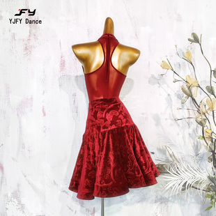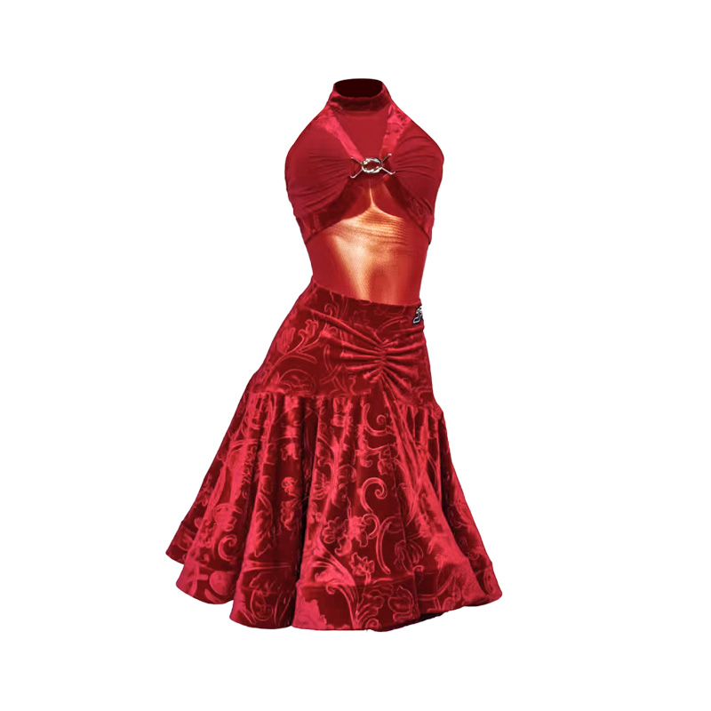又见梵羽拉丁舞蹈服红色分体练功服鱼骨大摆半身裙国标舞服ALW245