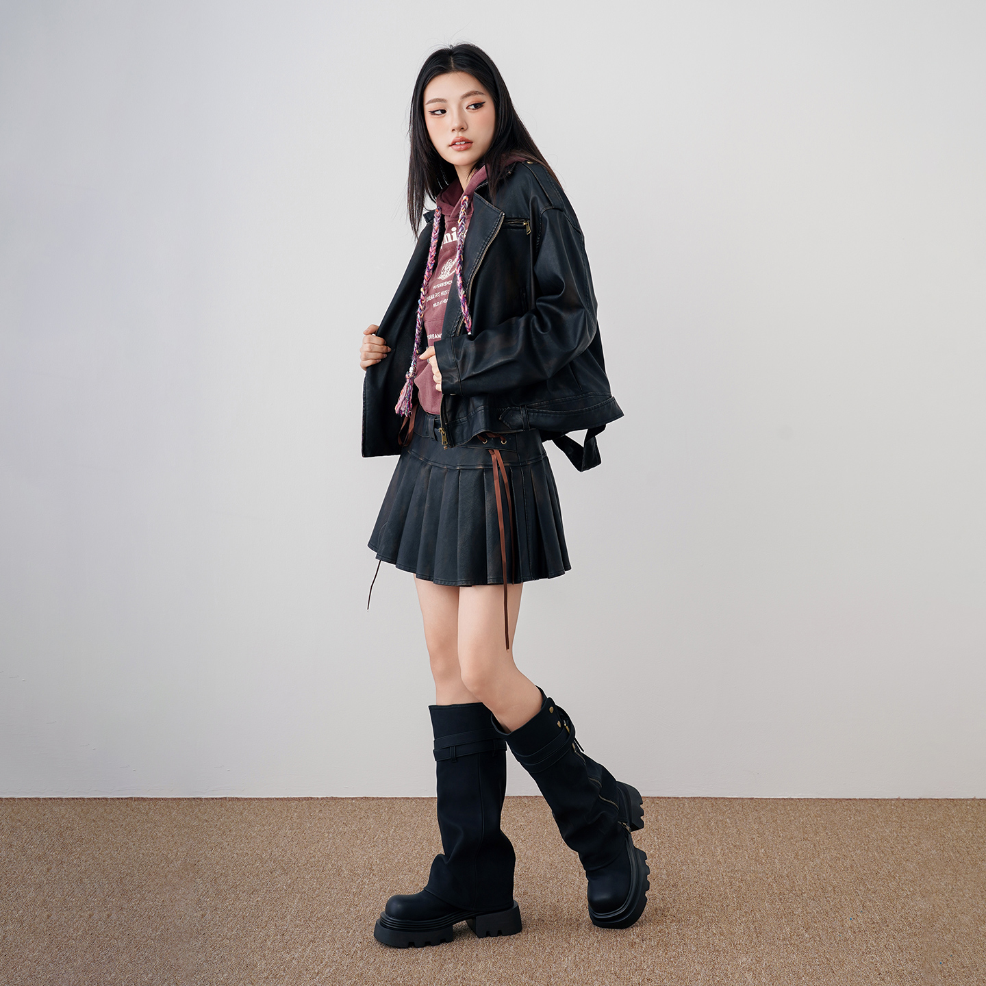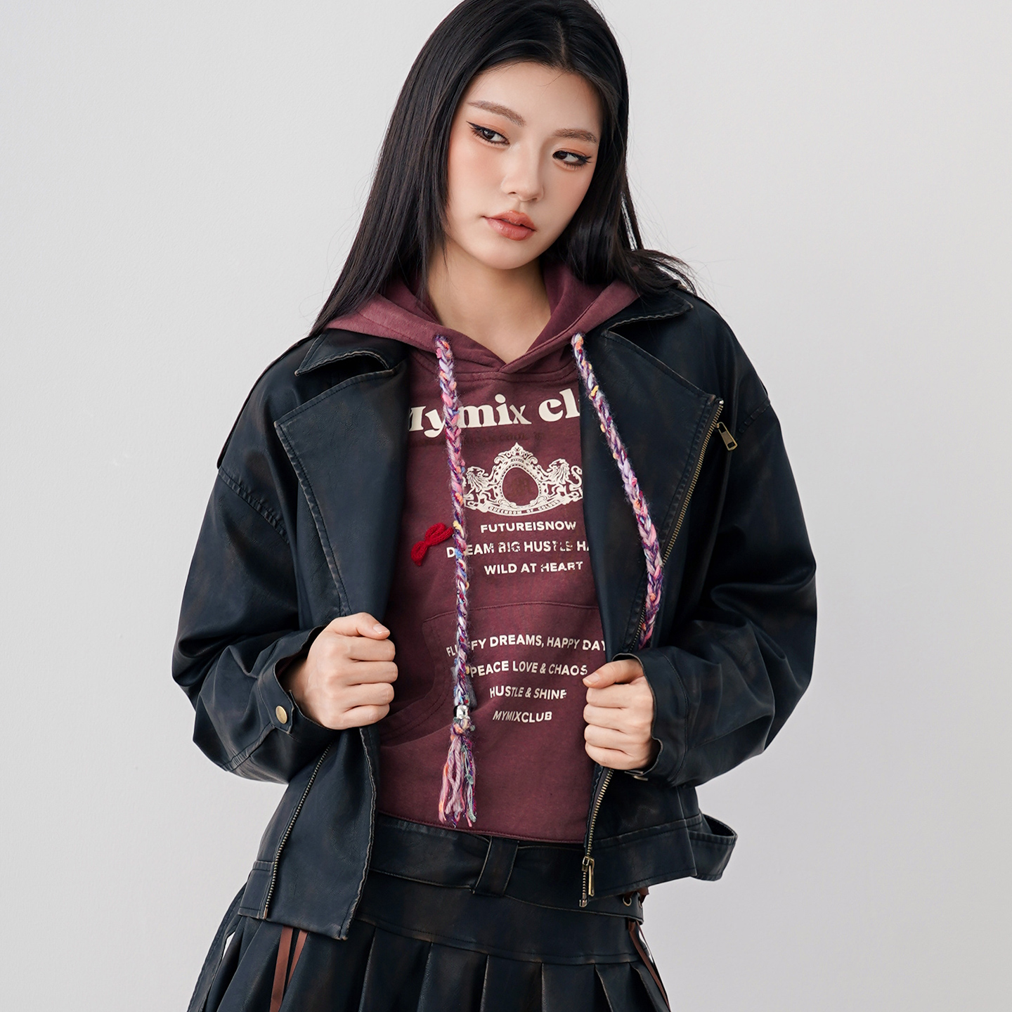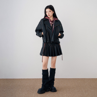 廓形外套女短款 复古做旧翻领宽松长袖 MYMIX美式 夹克 25秋新品