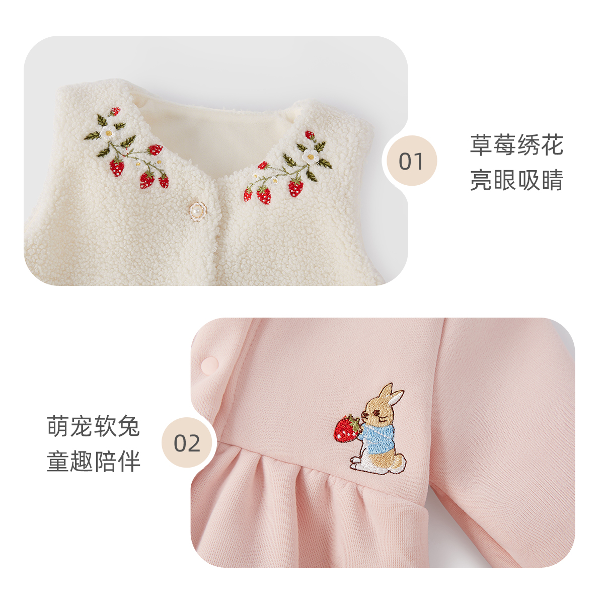 一岁宝宝运费 婴儿连体衣秋冬女婴两件套哈衣新生套装 抗菌远红外