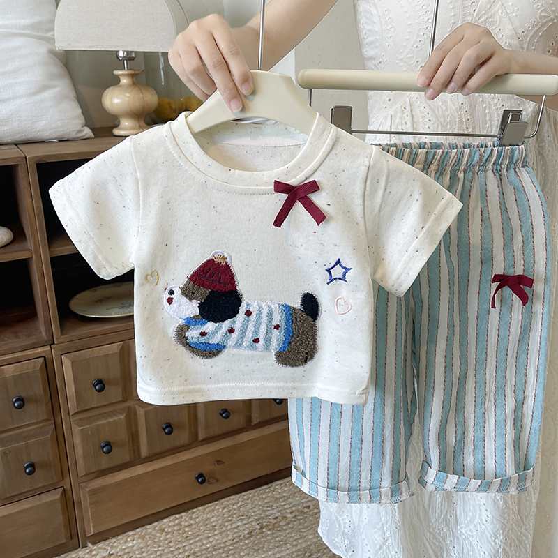两件套女宝宝休闲童装 女童夏季 卡通刺绣T恤休闲裤 小女孩韩版 套装