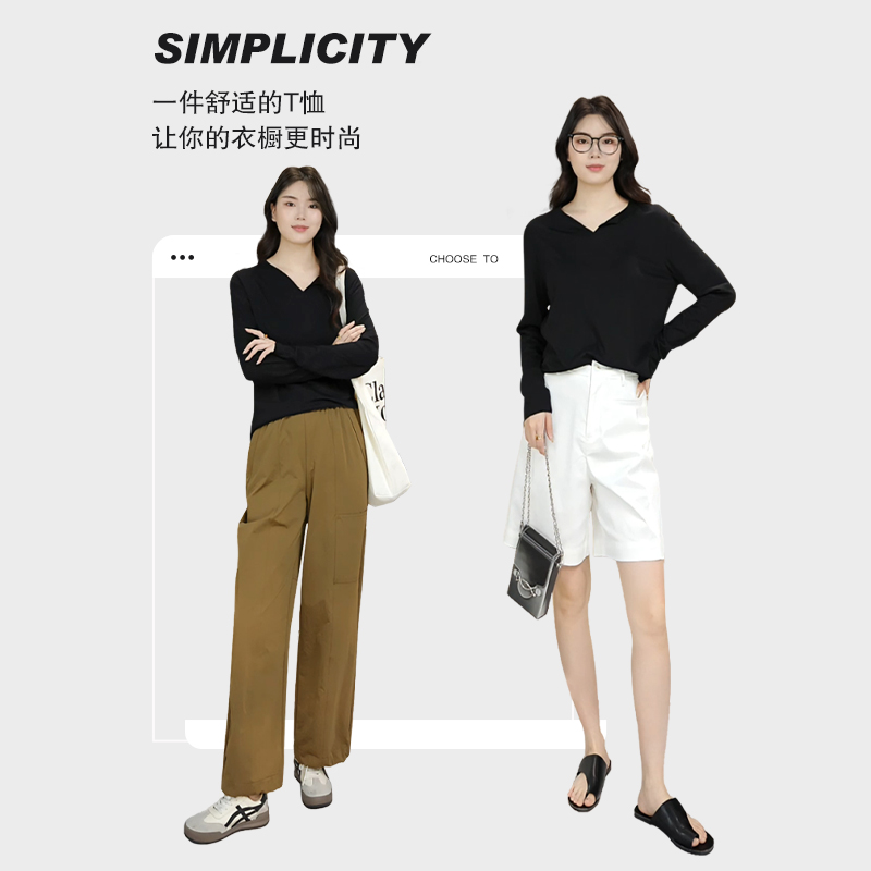 晚白2025年秋新款 女 宽松亲肤棉质上衣气质韩系休闲显瘦T恤衫