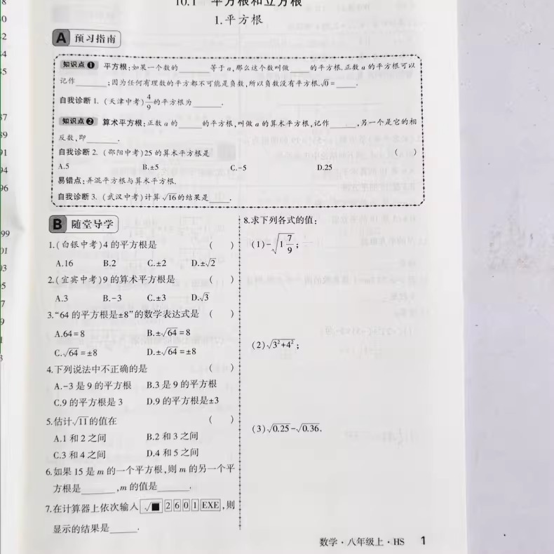 2025秋新版 海韵图书 8年级上册数学华师大版 8年级上同步 随堂1 教材同步练习册本地专用附读背手册 1导练八年级上册数学华师版