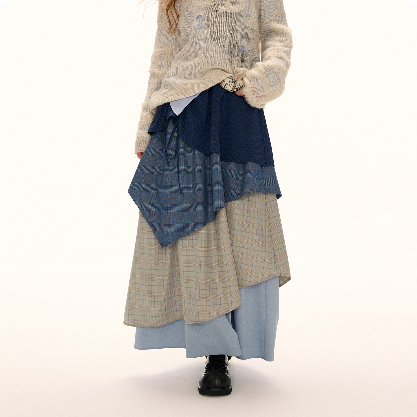 裙子 新款 MAMC格纹多层次撞色长裙美式 复古宽松休闲半身裙女秋季
