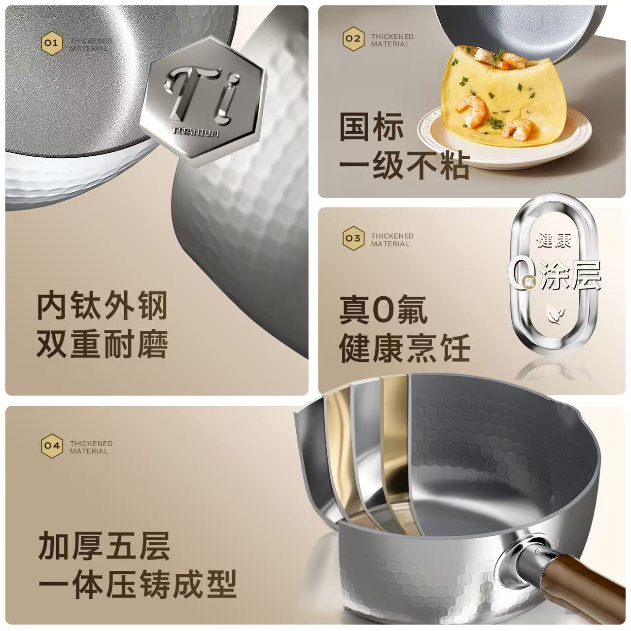 kimscook钛雪平锅小奶锅不粘锅家用一人食婴儿辅食泡面锅 自营