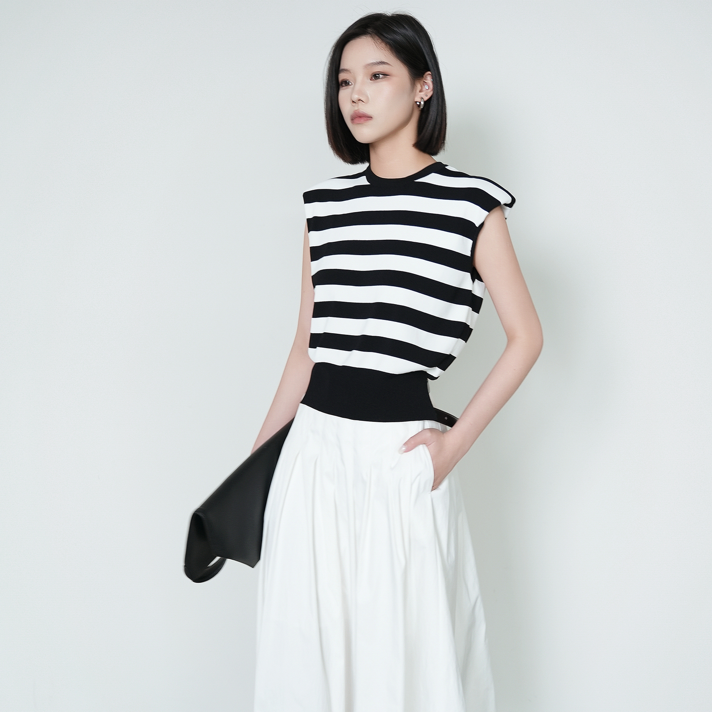 莱赛尔上衣T恤黑白条纹针织衫 Migaino曼娅奴女装 圆领无袖 新款 夏季