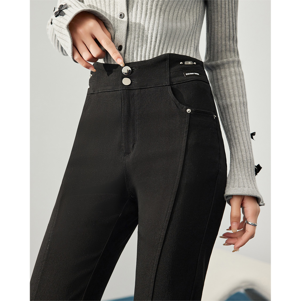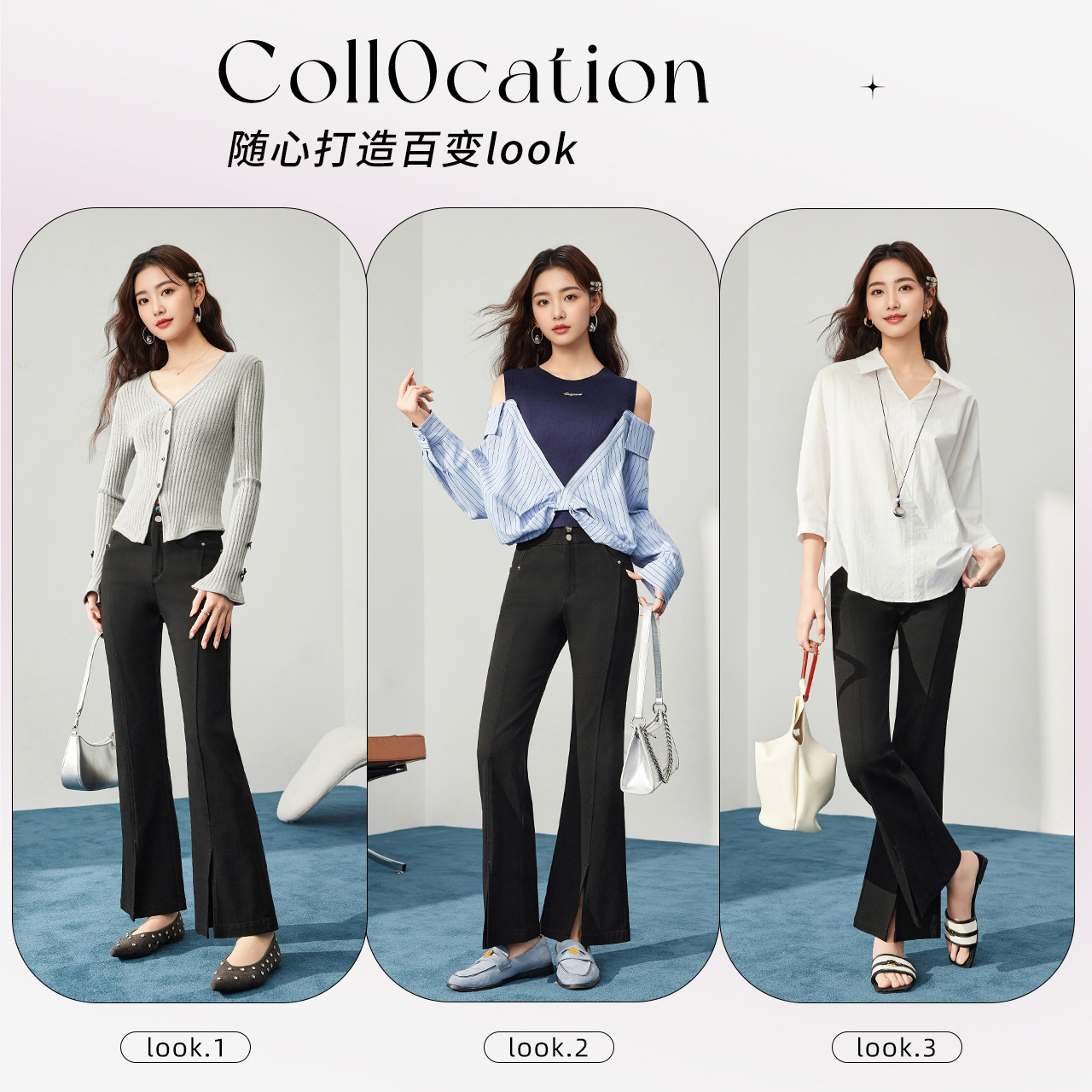 女春秋新款 休闲直筒慵懒松弛感裤 高腰垂感窄版 裤 子 西装 黑色阔腿裤