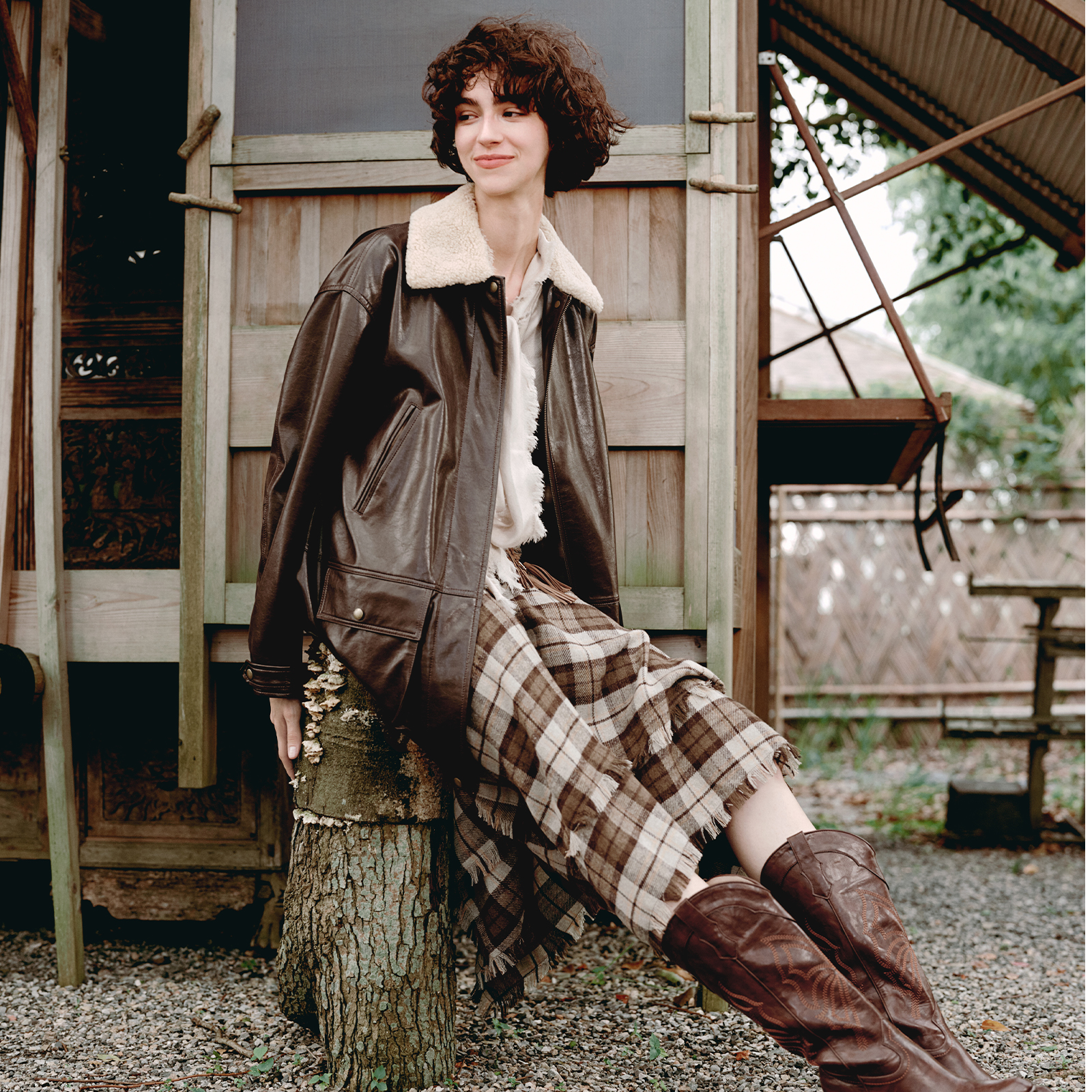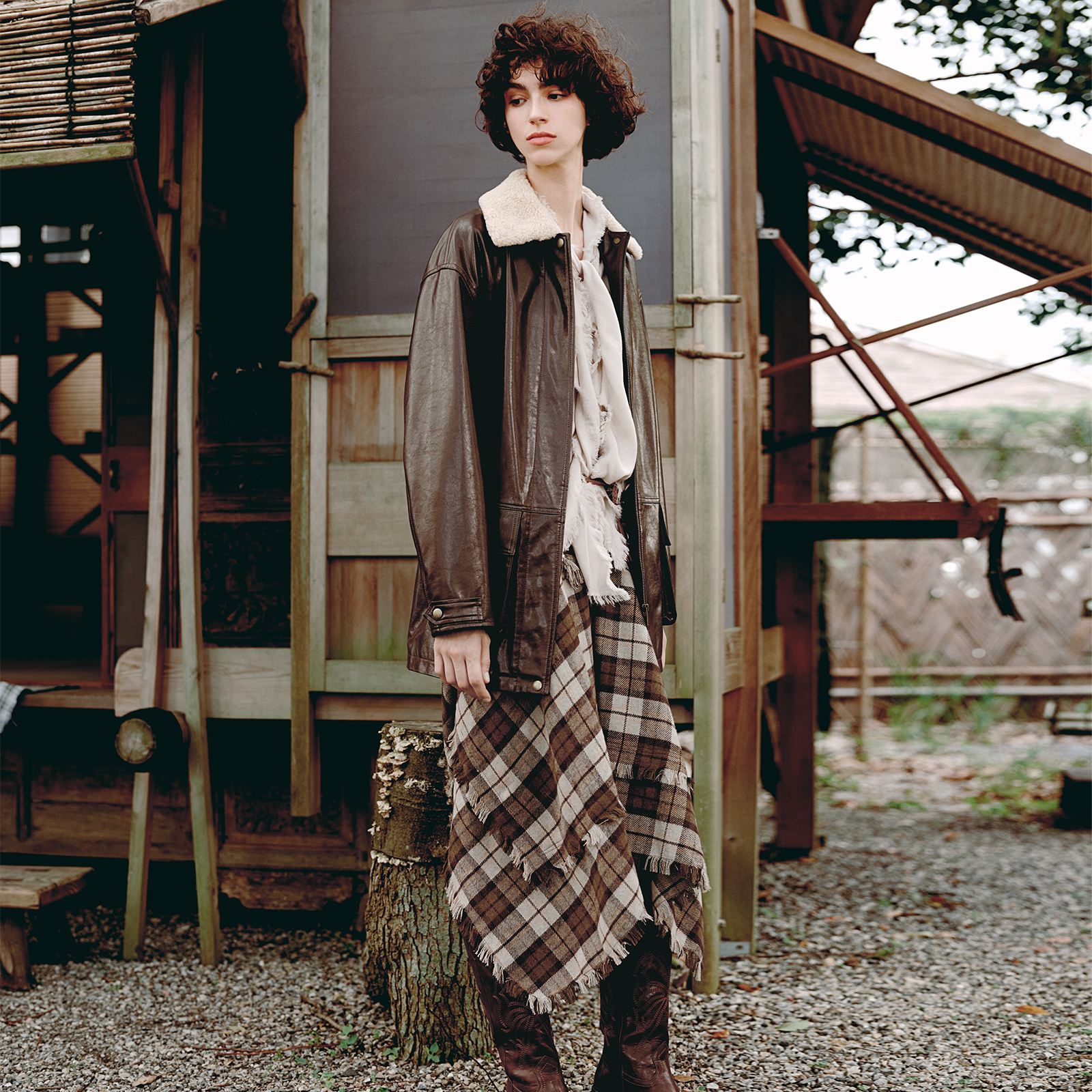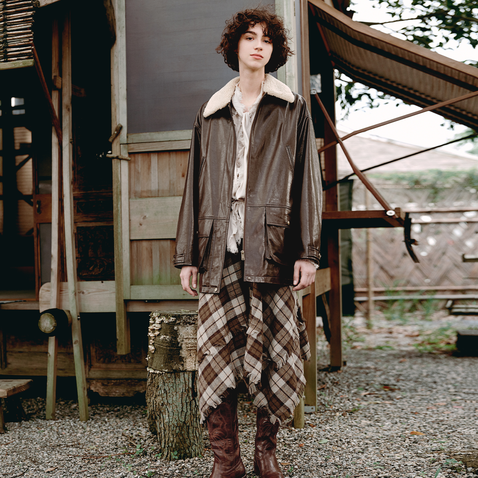 18345614 女长袖 设计师款 佐丹奴宽松miu系学院风花边立领格纹衬衫