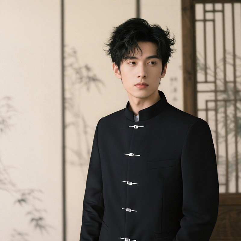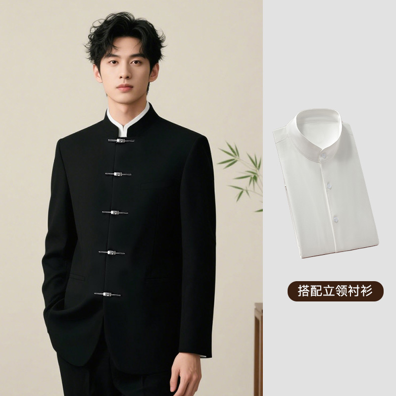 新中式 新郎结婚国风唐装 订婚西服套装 中山装 男立领西装 罗蒙秋季