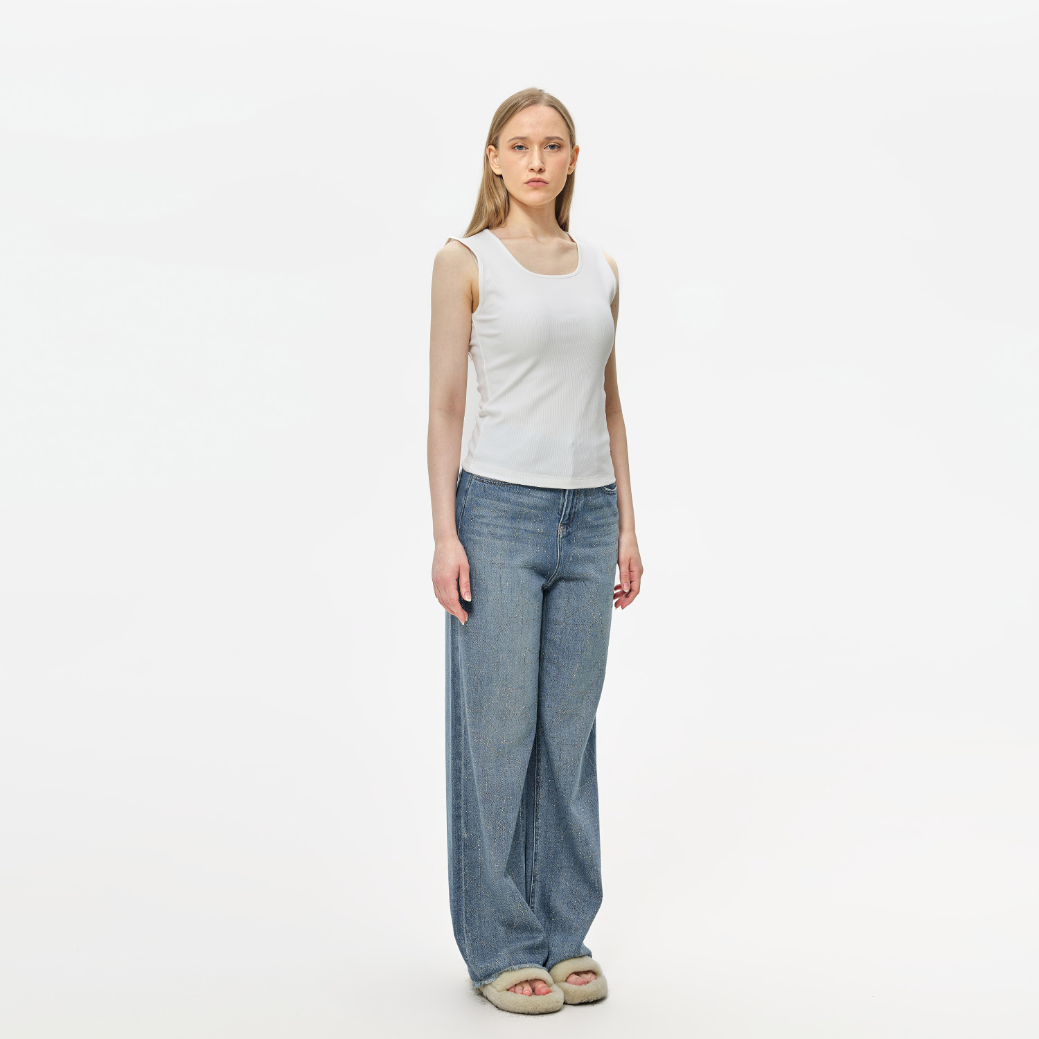 t恤打底衫 纯色百搭外穿无袖 新款 白色纯棉直筒吊带背心女内搭夏季