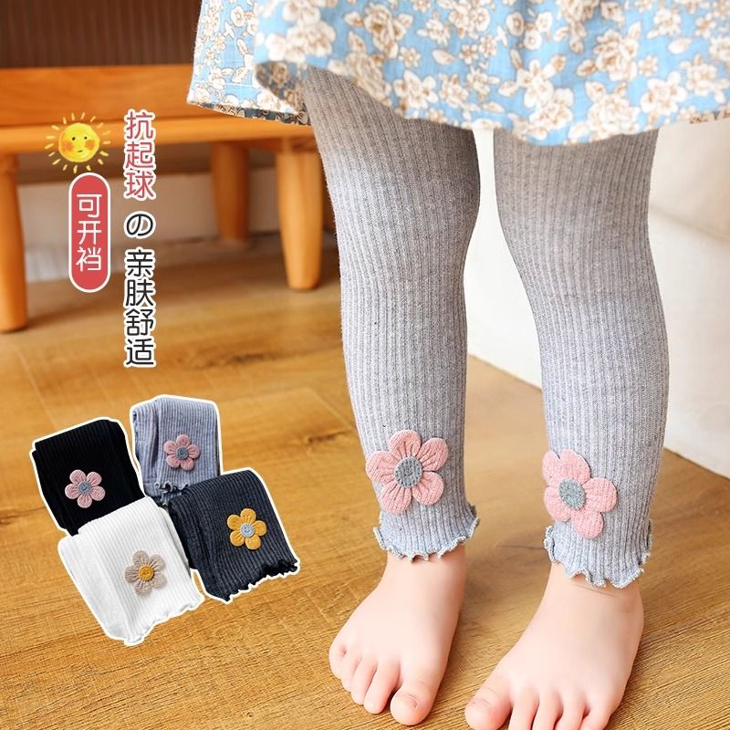 纯棉大PP儿童可开裆宝宝连裤 薄九分款 袜子外穿 婴儿秋季 女童打底裤