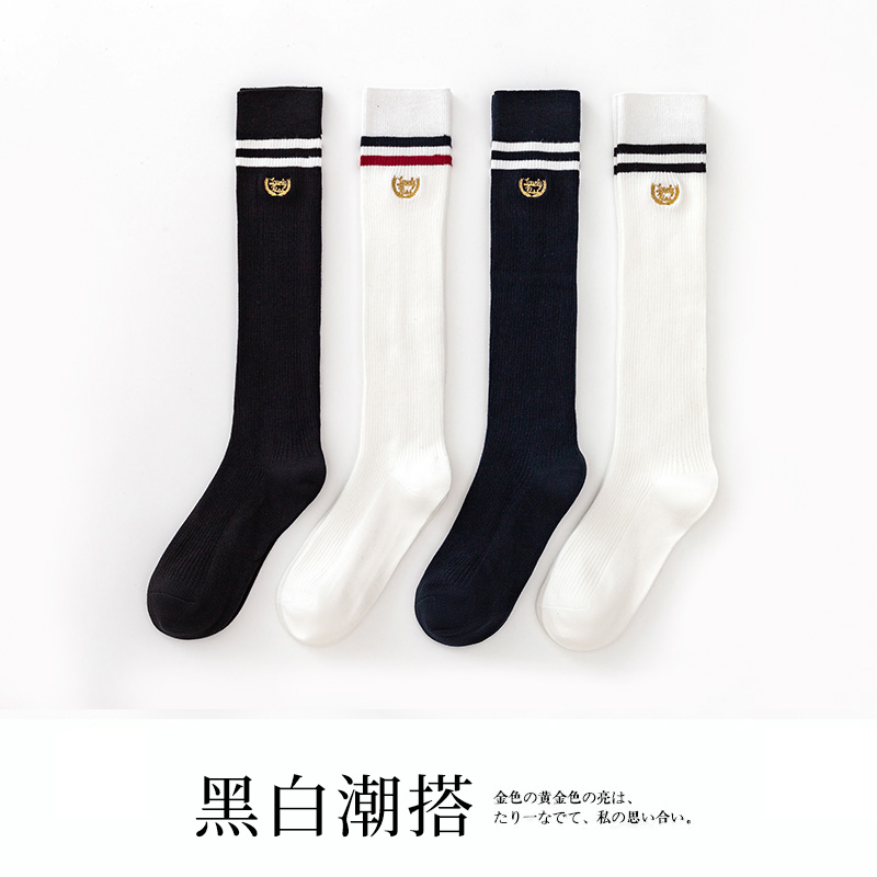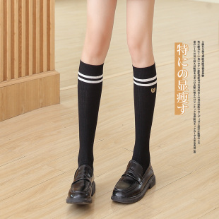 小腿袜jk袜子女白色条纹中筒春秋学生学院风高筒长袜潮秋冬长筒袜