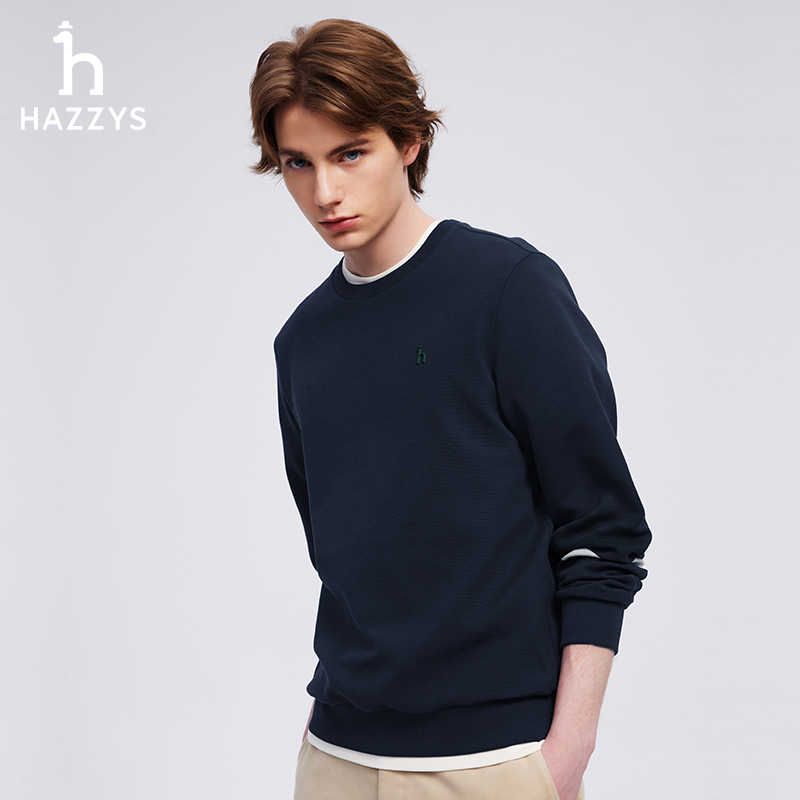 男款 通勤长袖 圆领卫衣 套头T恤简约休闲潮流时尚 Hazzys哈吉斯秋季