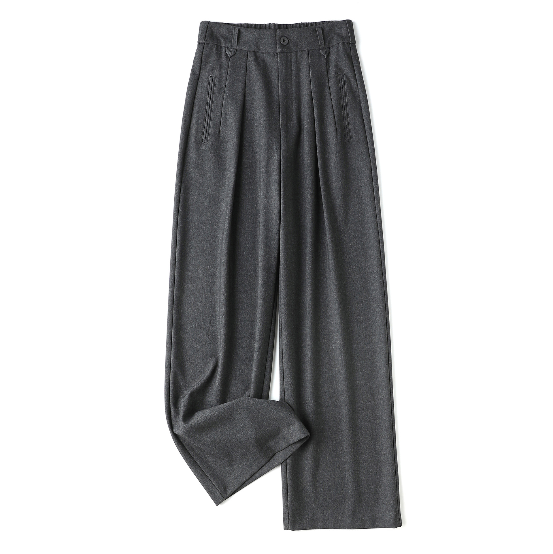 天丝羊毛纯色阔腿高腰西裤 女 气质通勤设计感遮胯宽松显瘦直筒长裤