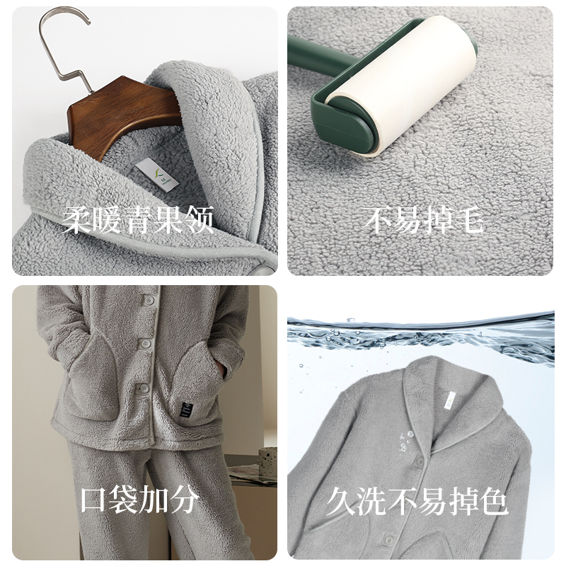 保暖加厚可外穿男家居服套装 羊羔绒情侣睡衣女冬季 抗静电 轩靓