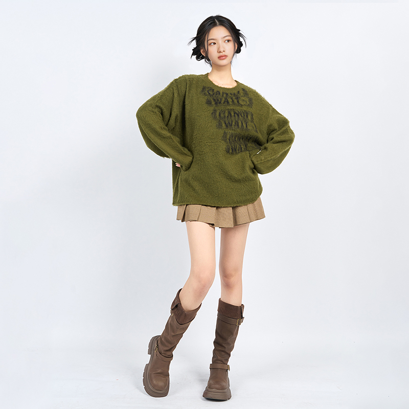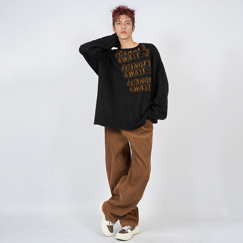 CANOTWAIT 备 冬日暖心系列阳光字母提花套头毛衣情侣潮 开学装