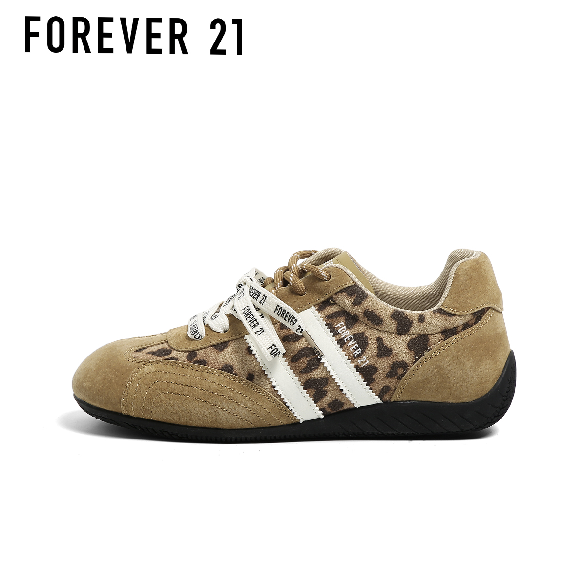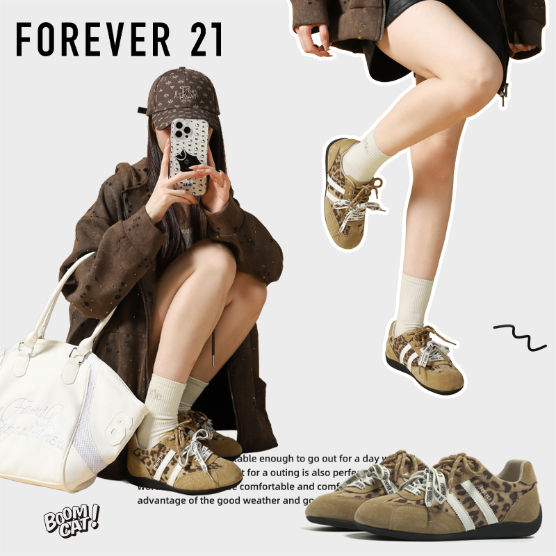 春秋超火百搭阿甘运动德训鞋 F21真皮豹纹赛车鞋 女内增高2025新款