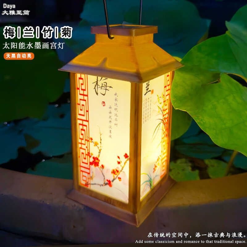 庭院烛光灯花园装 水墨画宫灯中式 饰景观户外复古氛围灯 爆款