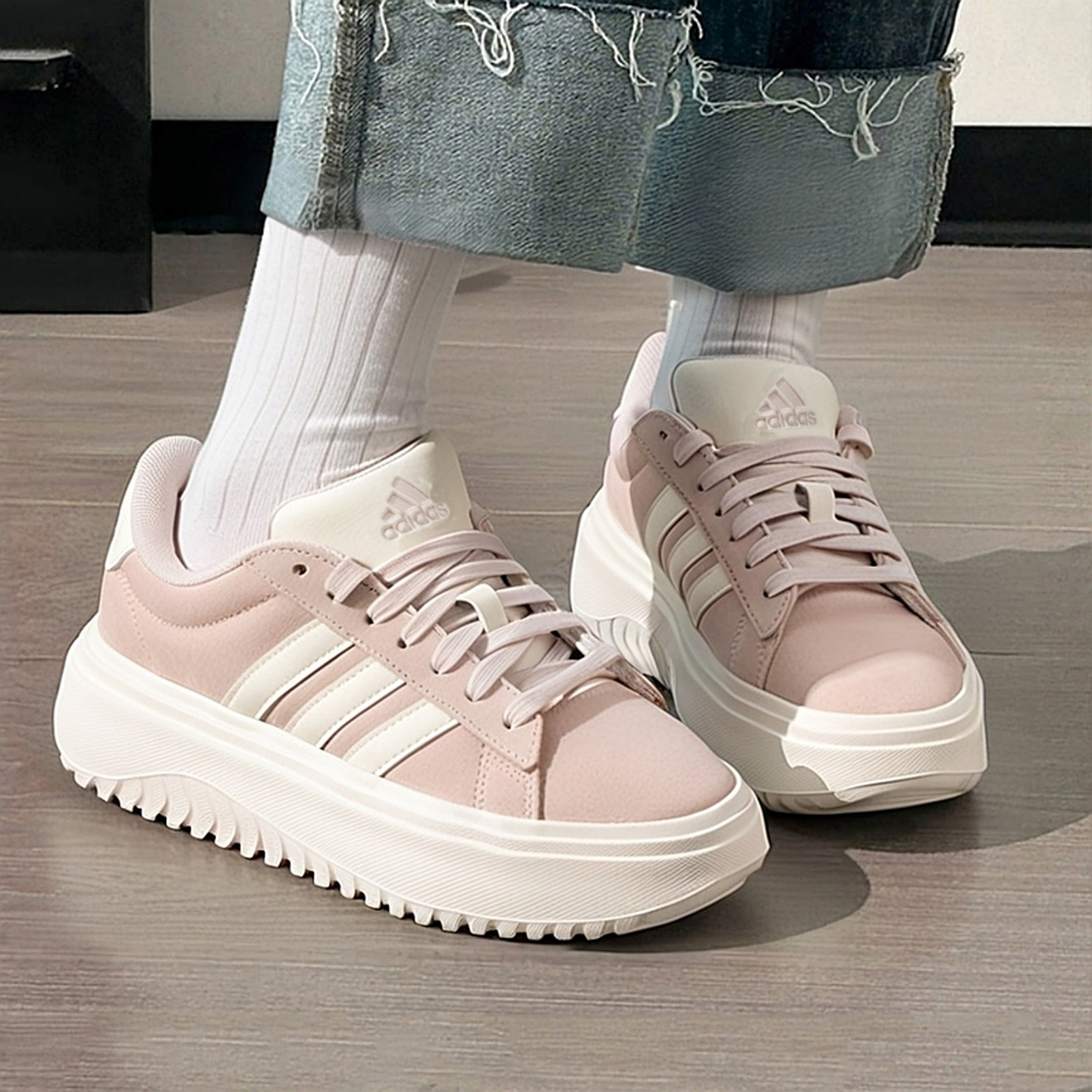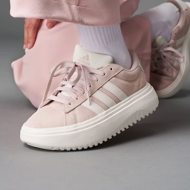 低帮轻便厚底板鞋 Adidas阿迪达斯粉色休闲鞋 运动鞋 新款 女2025秋季