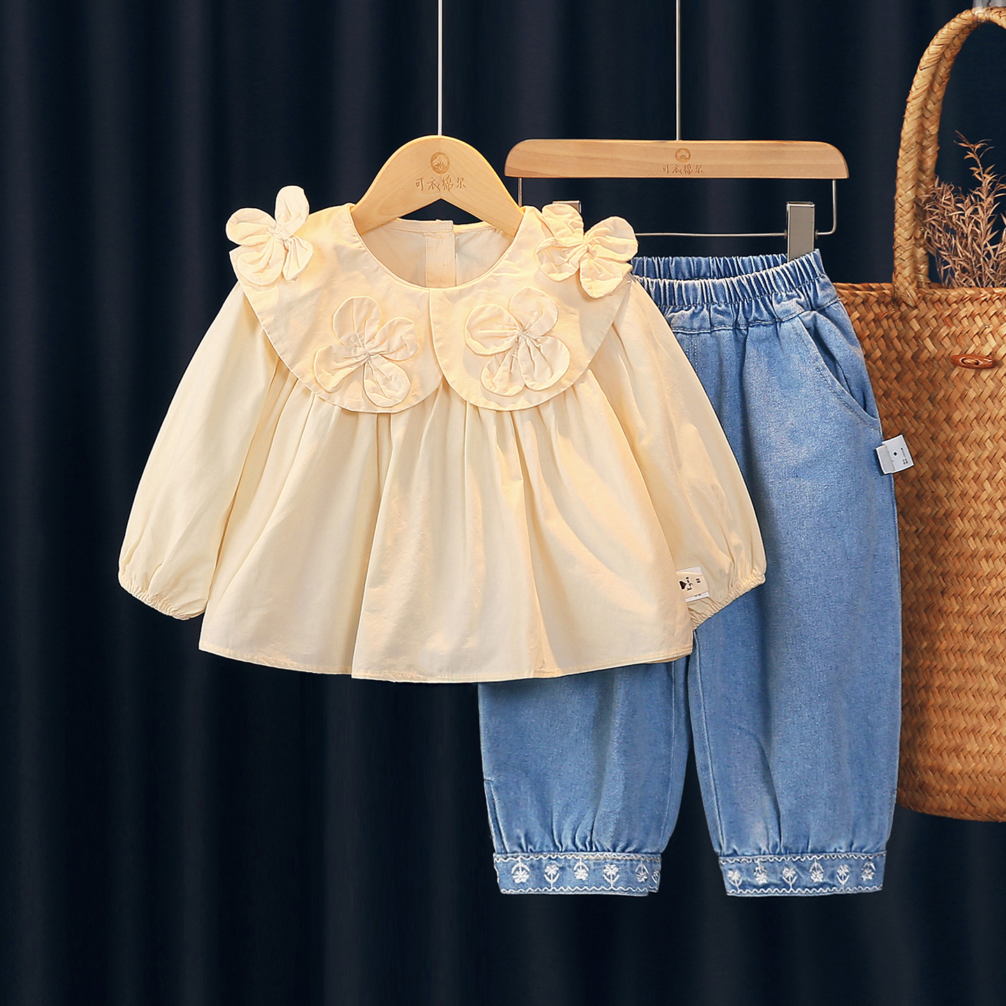 儿童牛仔裤 女孩好看洋气娃娃衫 宝宝纯棉两件套 2025新款 女童秋套装